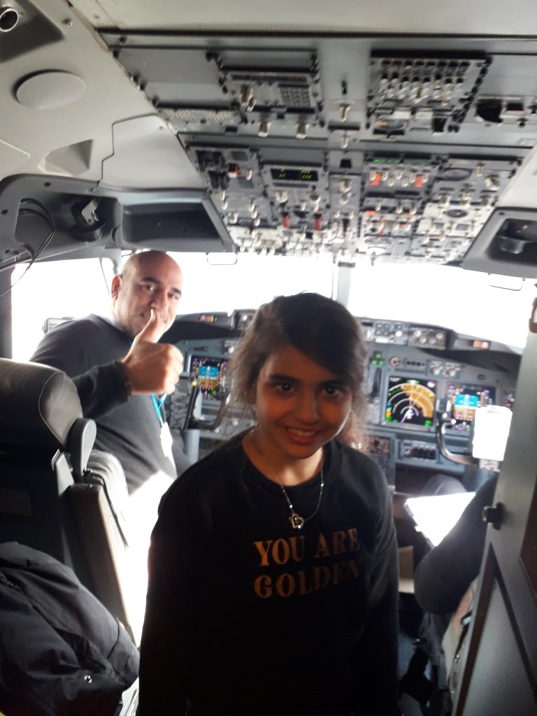 כניסה לשרוול E2 ועלייה למטוס, אלה הצטלמה עם הטייס בקופקיט , טיסה קצרה מאוד, ואחרי 40 דק' נחתנו בנמל תעופה פאפוס.
