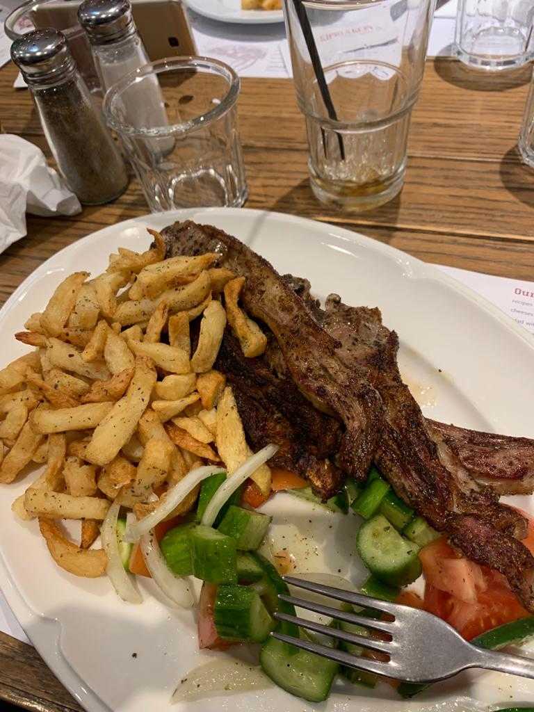 ישבנו לאכול באחת ממסעדות הבשר במרינה, הזמנו צלעות טלה, עוף צלוי , המנות מוגשת בצורה נעימה ונקייה , מנות האוכל יחסית גדולות וטעימות מאוד, המחיר פשוט מצחיק.