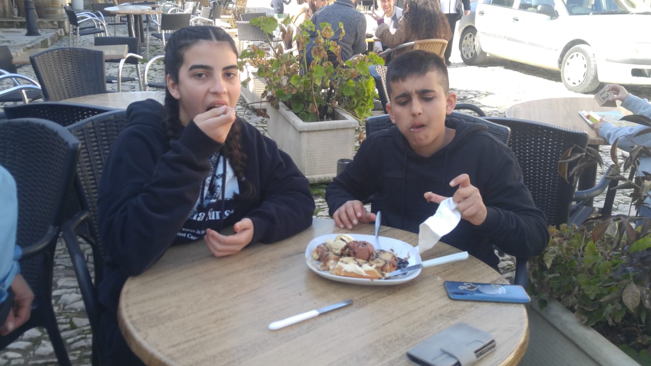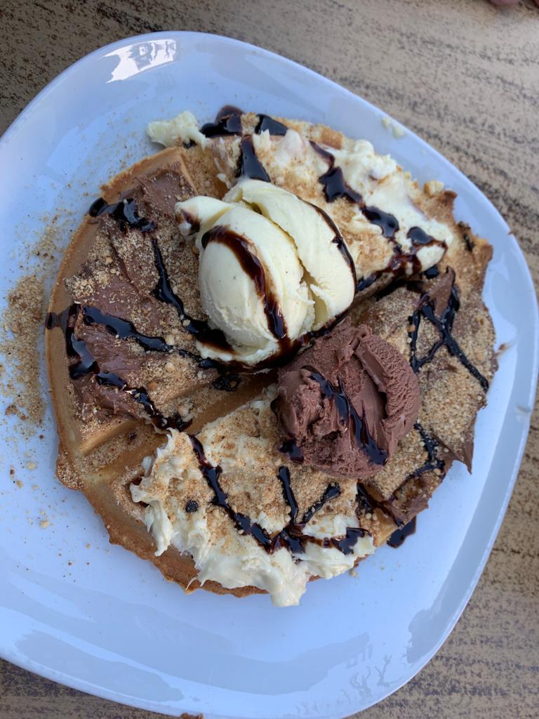 קינחנו לנו בישיבה בבית קפה מקומי, לקפה הפוך , מיץ תפוזים וופל בלגי נדיר להפוך, היה טעים ומרענן.