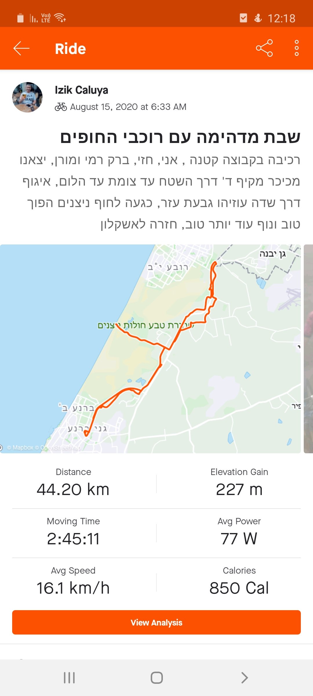 בתאריך 15/8/2020 שבת כייפית עם רוכבי החופים לכיוון צפון.