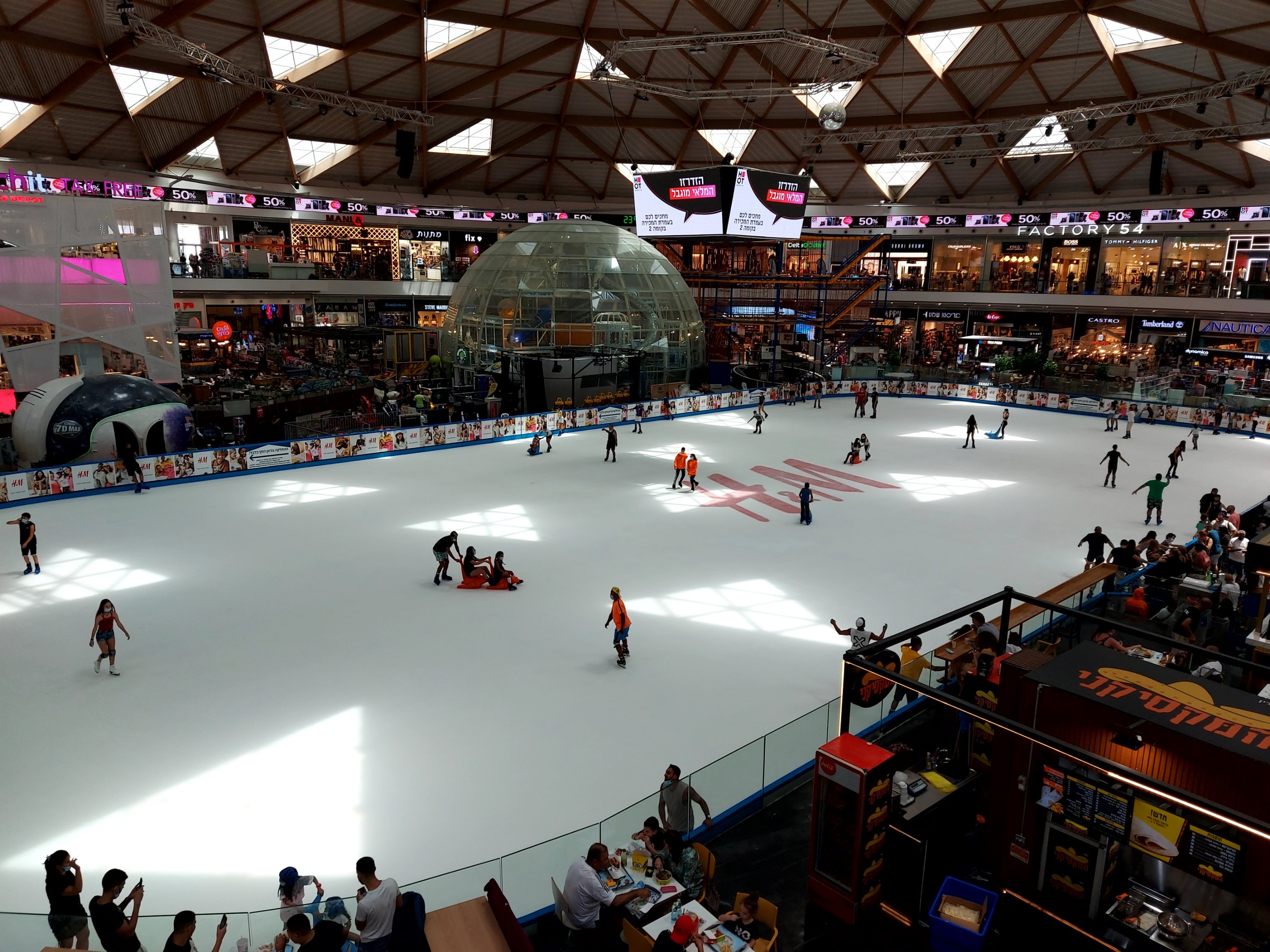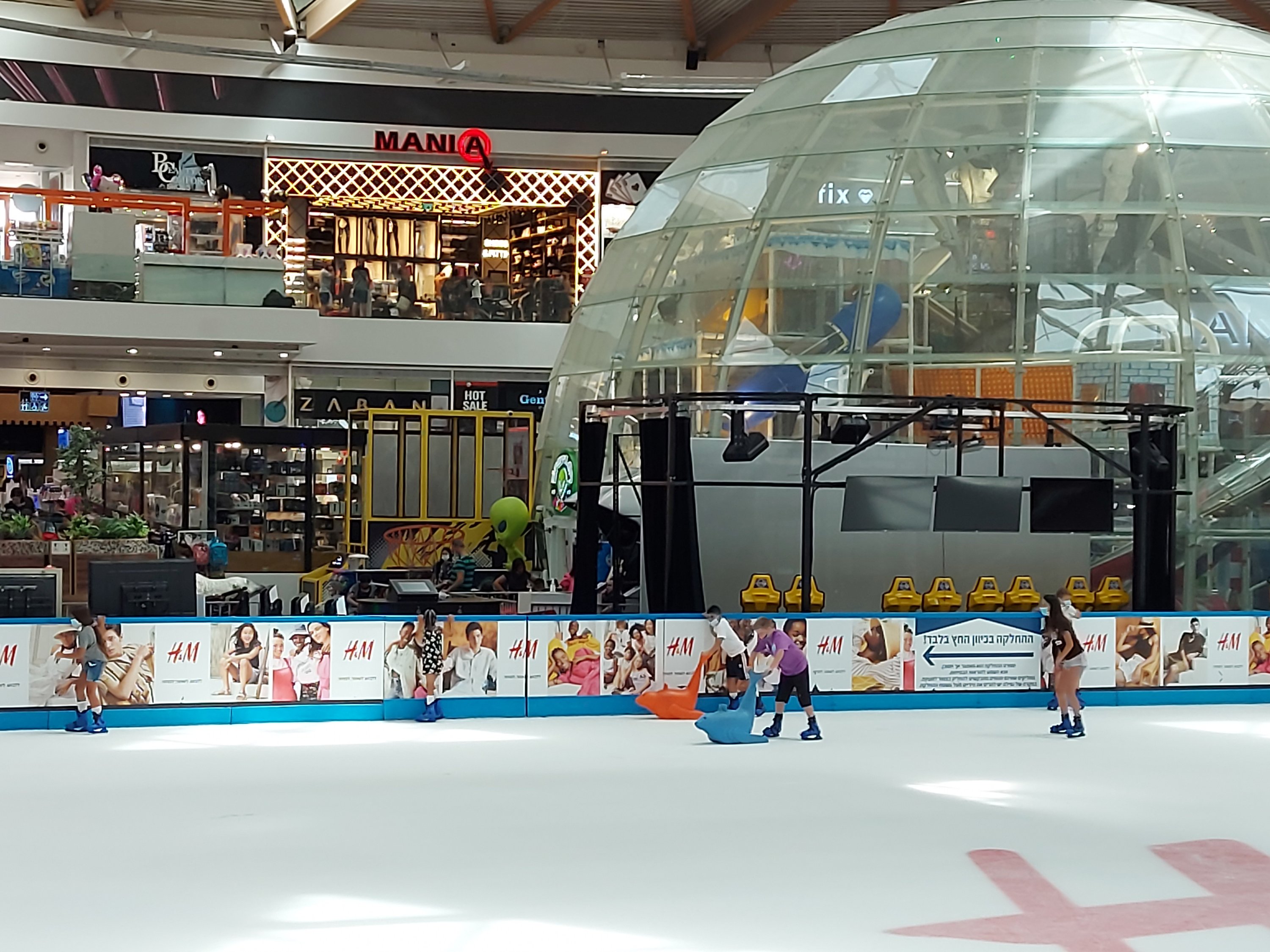 יום ראשון היום האחרון לנופש, התארגנו ופיננו הוילה בעשר בבוקר ולקחנו הילדים לקניון סימול להחלקה על הקרח.