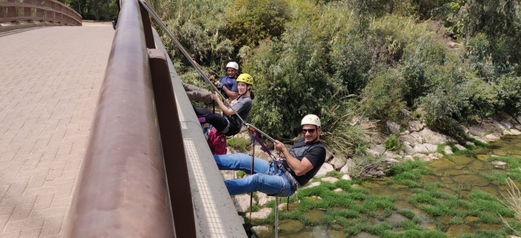 לאחר שסיימנו חזרה על סוגי הקשרים, יצירת תחנות עגינה ושימוש נכון בצורת הגלישה לקחנו הציוד והתמקנו על הגשרכל חניך ימר תחנת עגינה לגלישה מהגשר כ- 10 מטר.