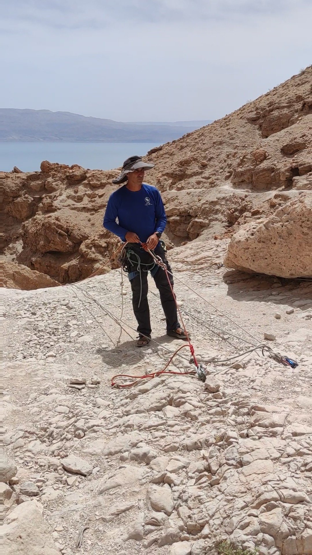 שעת המפגש נקבעה לשעה 08:30 בעזרת מיקום וויז הגעתי לחניון , נפגשתי עם המדריך שלומי ועם החניכים טל, מוחמד ואנדריי, התארגנו על הציוד וירדנו לתחילת מצוק שילת. שלב ראשון היה בלימוד סוגי קשרים , הצלה, עגינה, קשר 8 , קשר א , איטלקי ועוד סוגי קשרים.