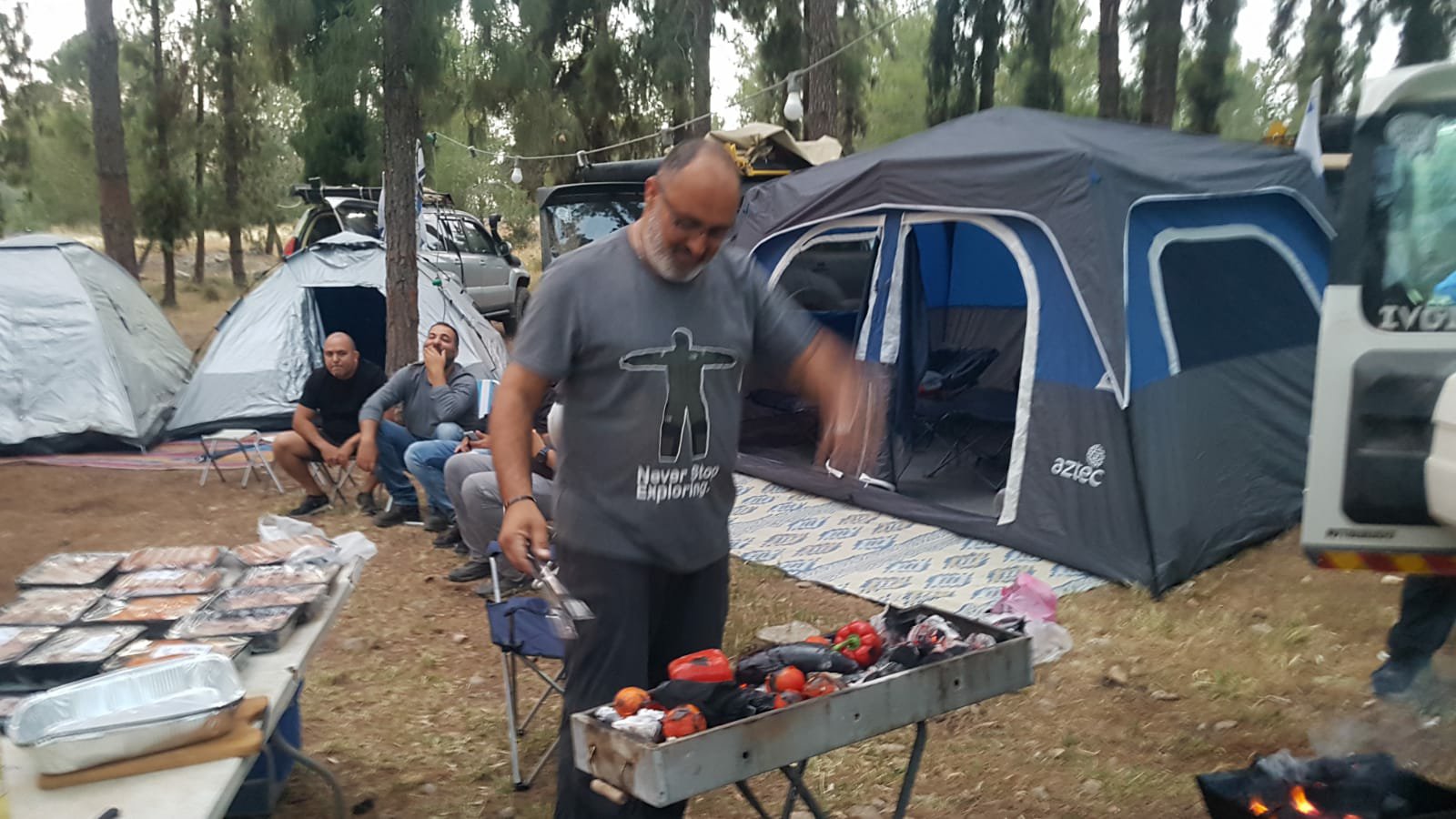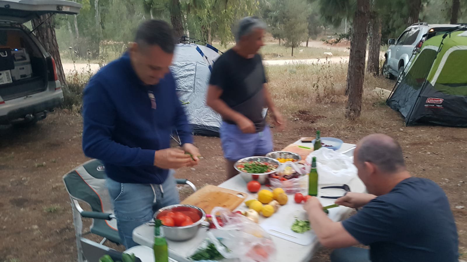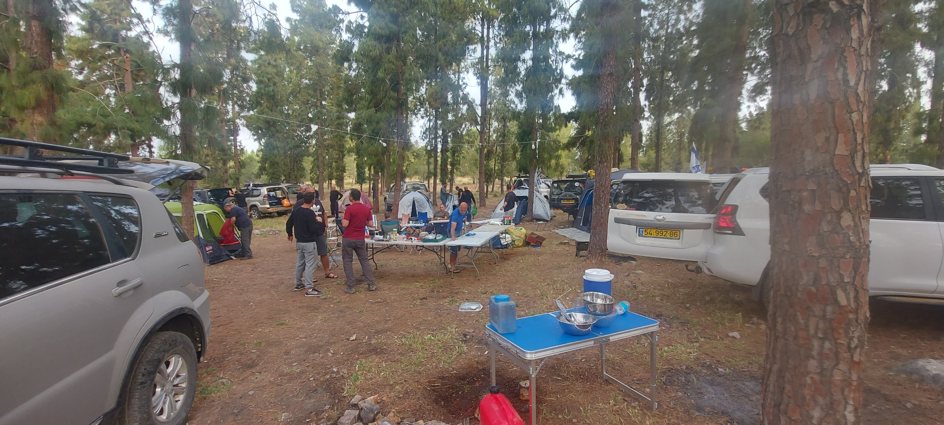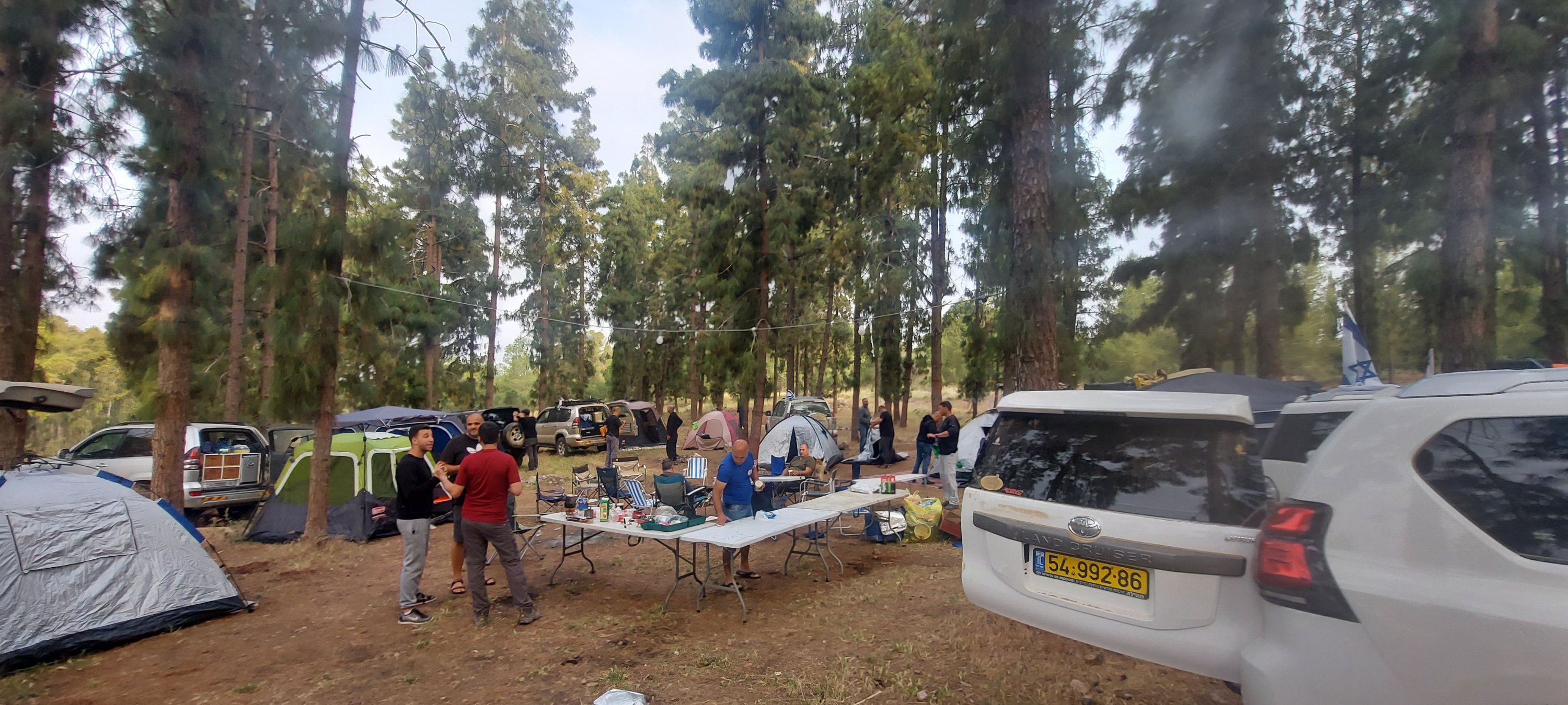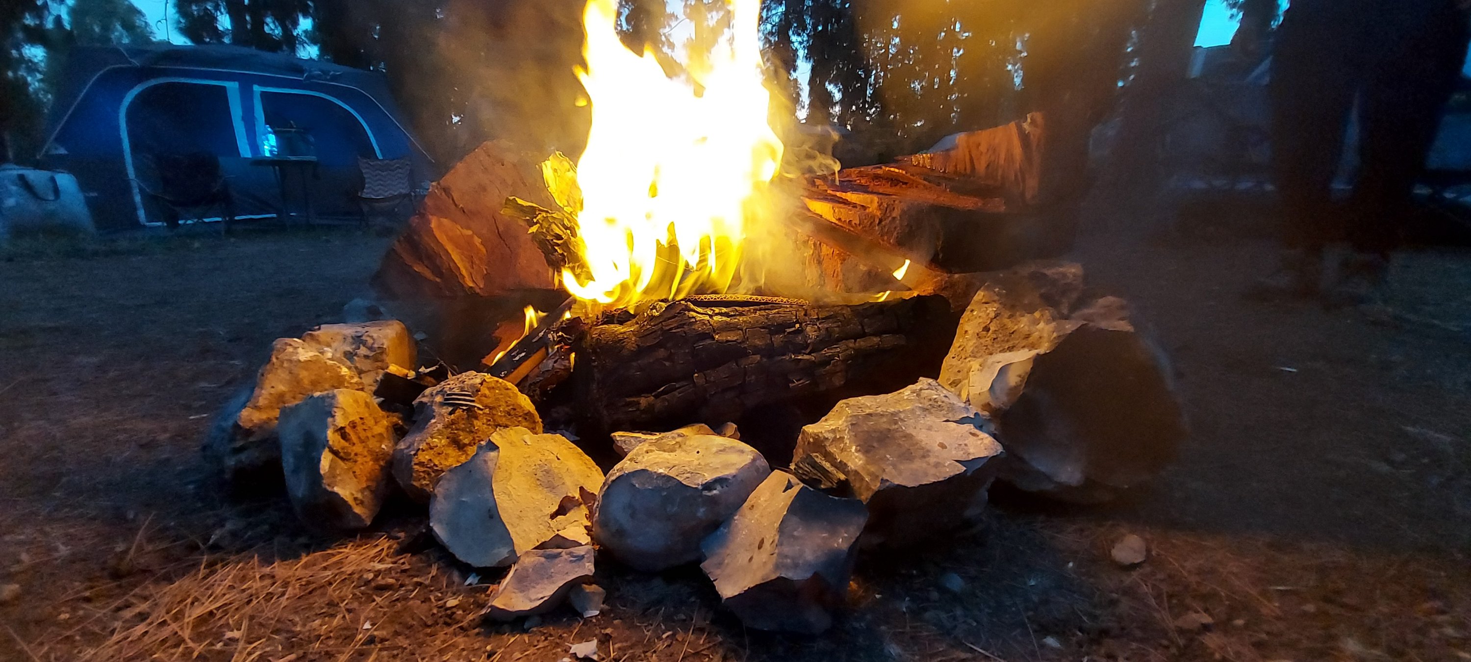 הגענו ליער קולה לקראת ערב, התארגנות זריזה על הקמת אוהלים, פריסת תאורת גרלנדה, פריסת שולחנות והוצאת מנגלים להכנת בשרים, יצרנו לנו גם מדורה קטנה לאוירה.