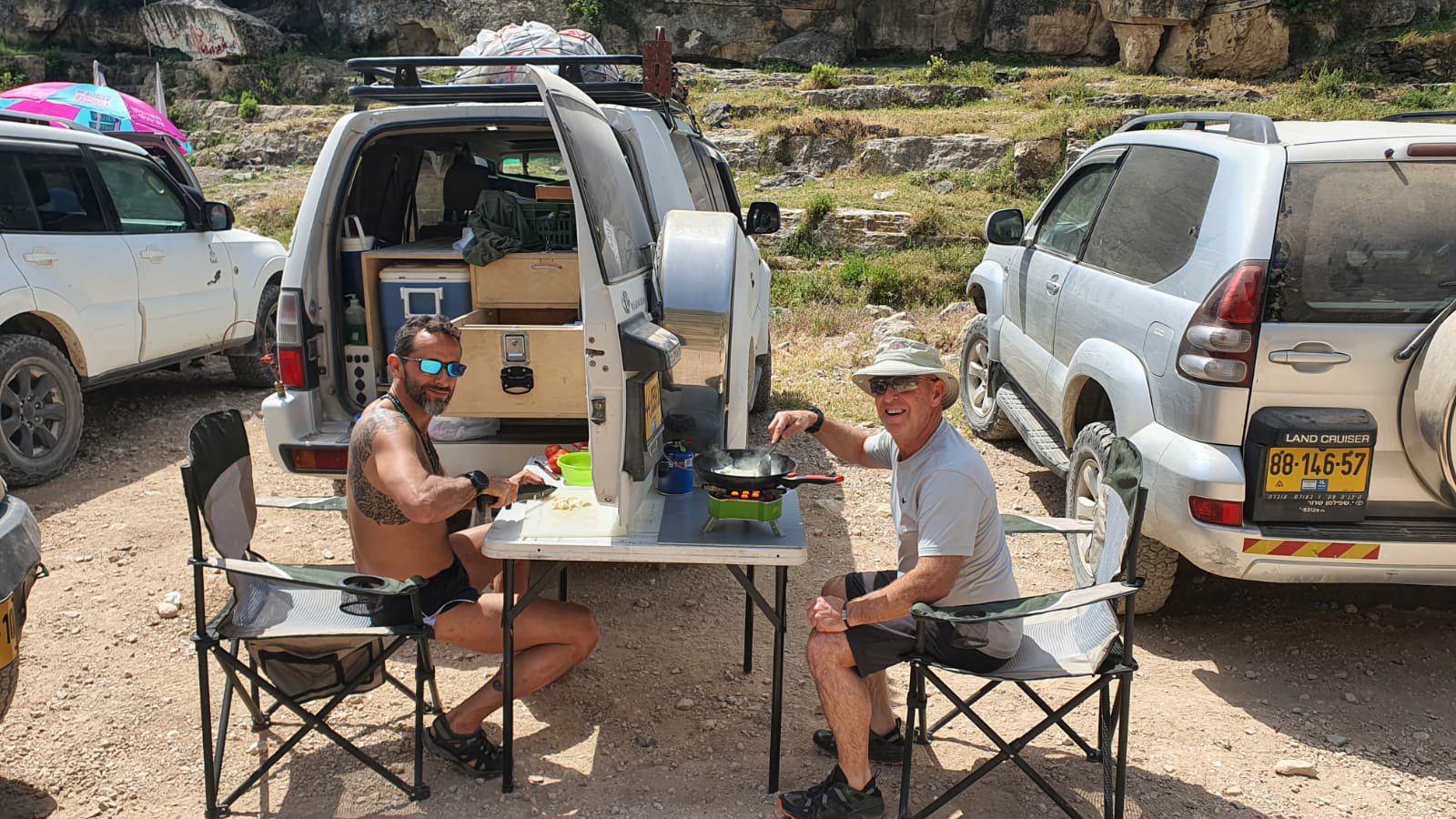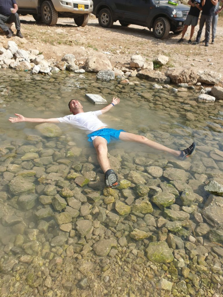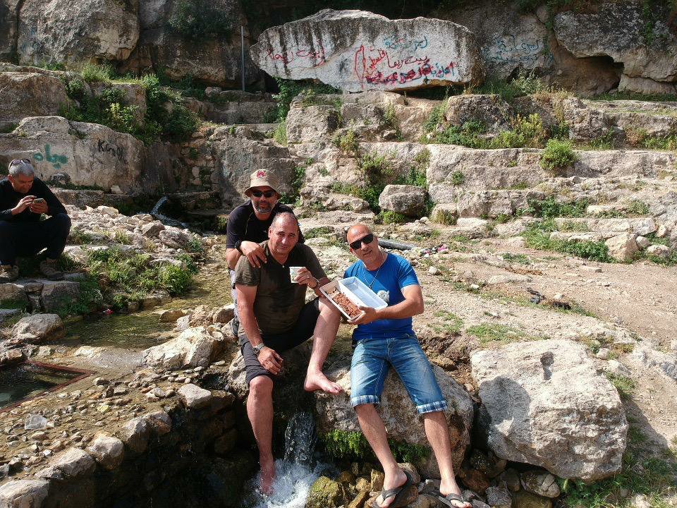 מעין דלווה המשכנו קדימה עד הגעתנו למימדיון הפלסטיני, פרסה וחזרה למעיין א זרקא, פריסת שולחנות וישבנו על ארוחת בוקר.