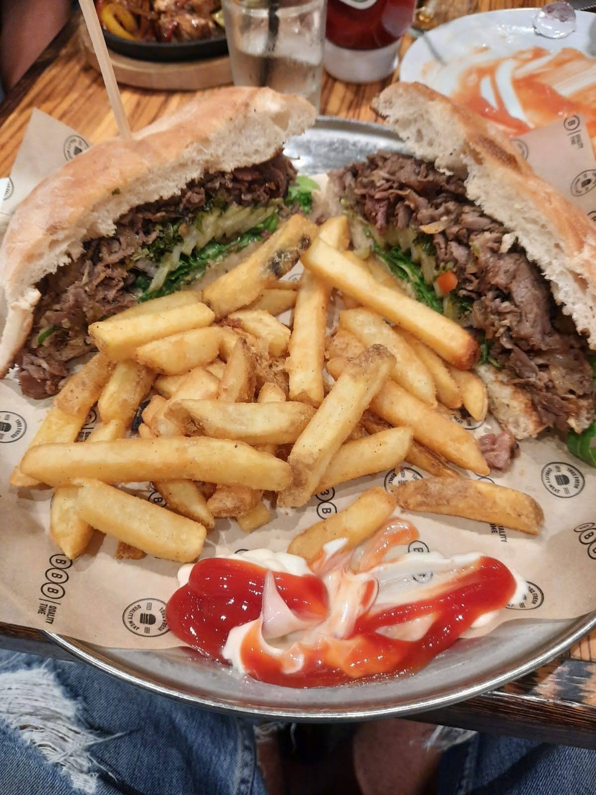 הזמנו ארוחה לפי טעמנו האישי, שתינו בירה לומה טובה והתפנקנו על נתחי אנטריקוט , המבורגר קצבים צ’יפס ועוד, בסיום עוד הספיקו לחגוג לי יום הולדת טרם לידתה.