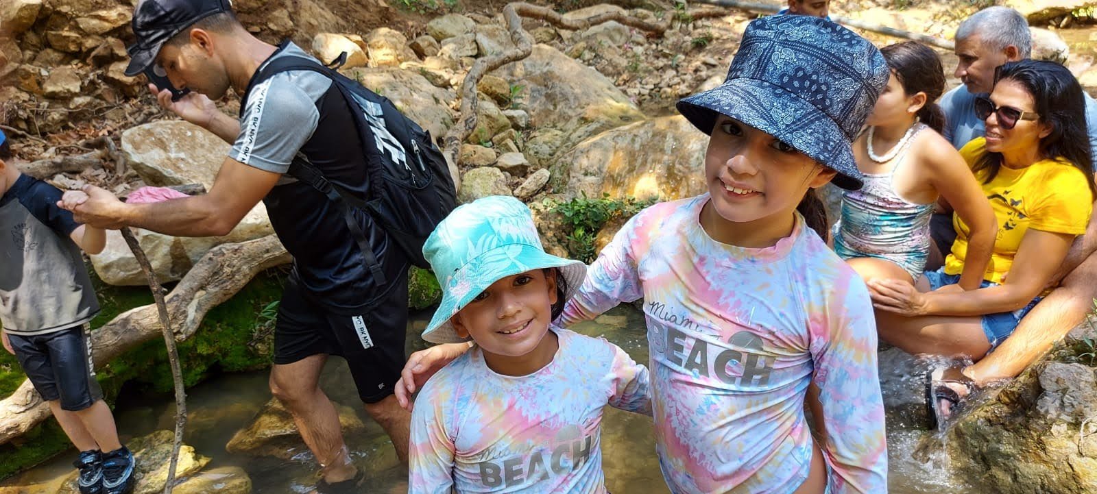 במפגש הגושרים חברה אלינו אתי ווגאס עם נתי והילדים, ההתרגשות של הילדים מהאיחוד עם שאר המשפחות היה משב רוח מרענן. נסענו כולנו ליעדנו הבא הסמוך לפארק שניר בדרכנו לנחל דן ובריכת עין המחלק.