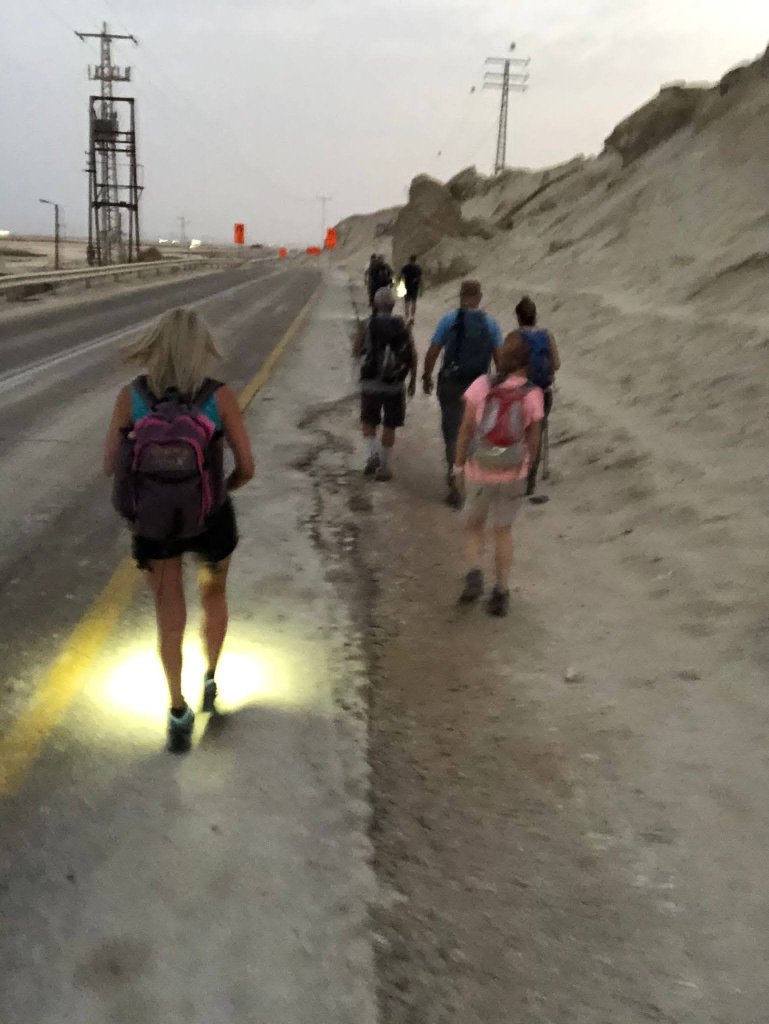 כאשר הגענו לנחל סדום הבחנו באלומת אור חזקה המגיעה מהנתיב הנגדי של הליכתנו, מדובר היה בשיירה גדולה של כ 12 גיפים שעברה ועצרה לידנו לומר שלום וגם לתדלק אותנו במים קרירים וצוננים, אין על מטיילי ישראל.
