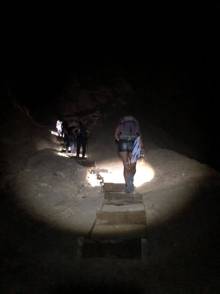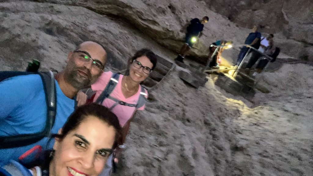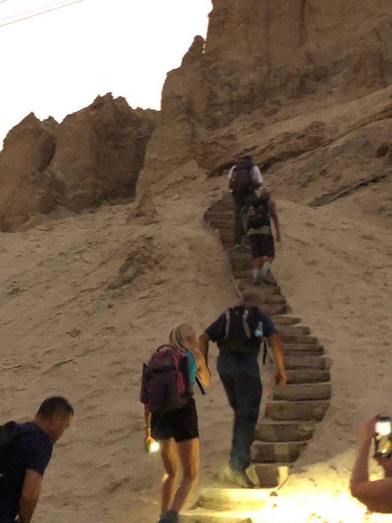 המשכנו בהליכה בהר סדום בדרכנו לשביל הדגים, בדרך חלפנו את הפטריה וכיפת הכפתור המיוחדת והמשכנו במגמת ירידה לכיוון שביל הדגים , הניווט בלילה היה קצת מאתגר לאור החשיכה המוחלטת .