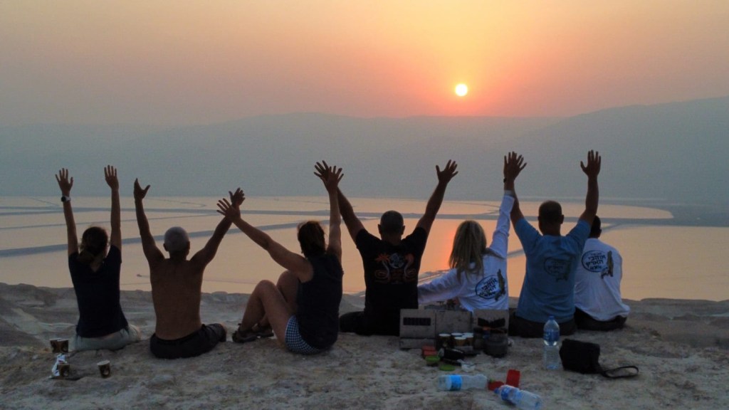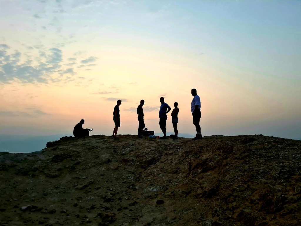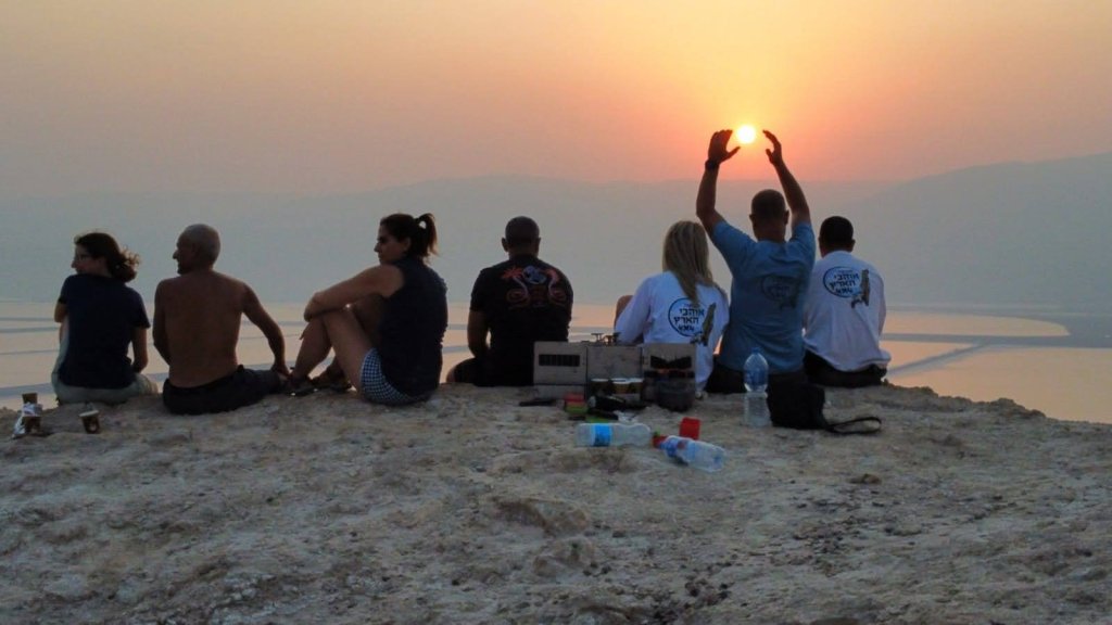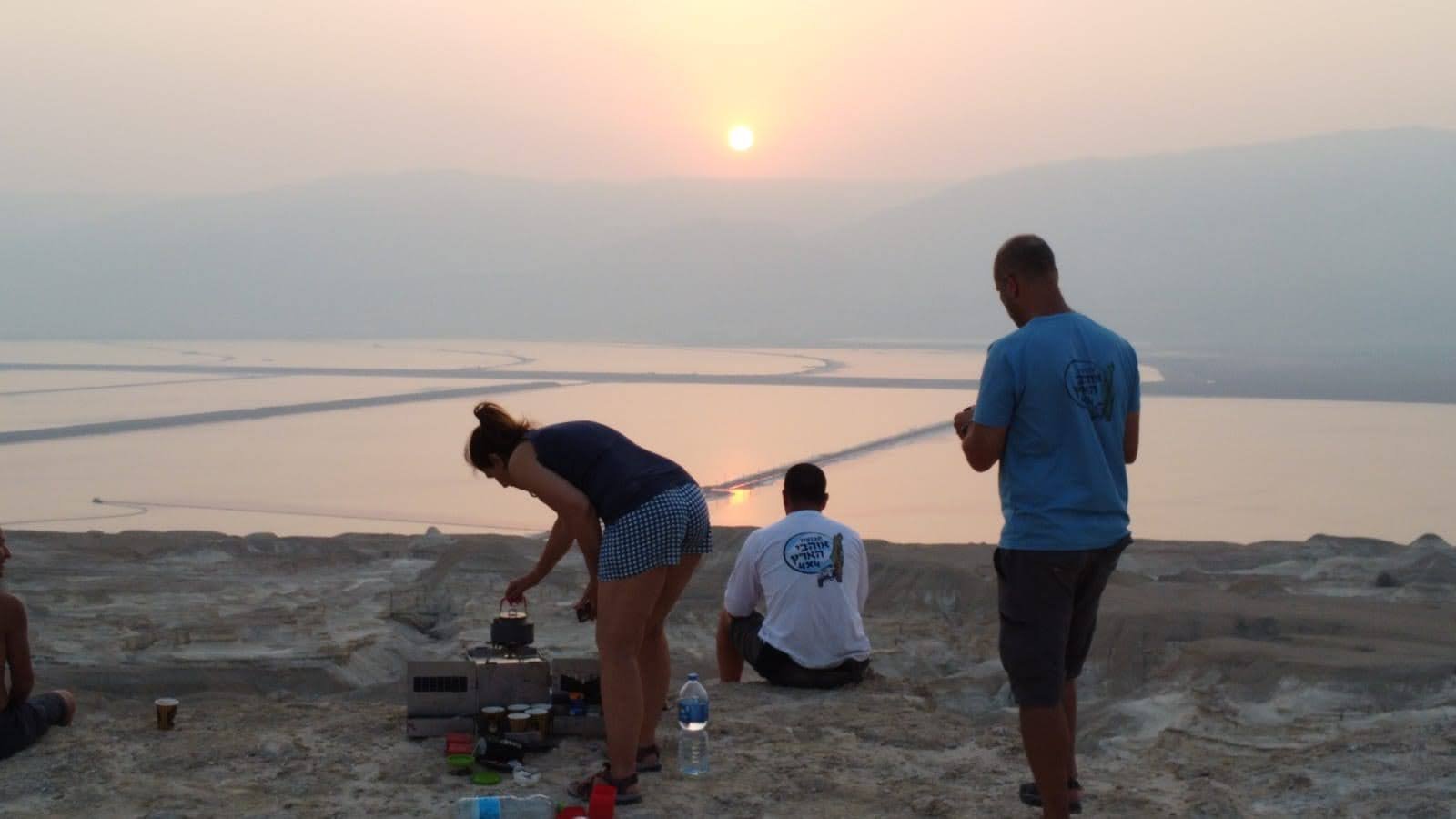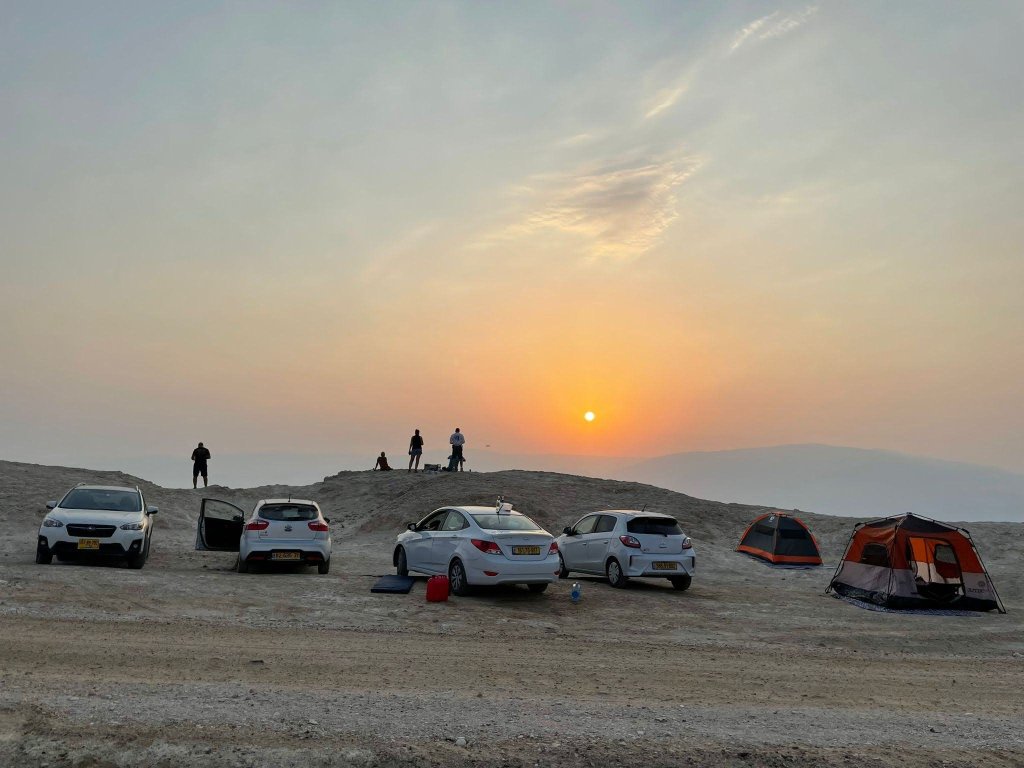 התארגנות קלה ועלייה לרכבים בדרכנו להקים את מאהל הלילה במצפור הר סדום מתוך מטרה לקבל את הזריחה בבוקר.