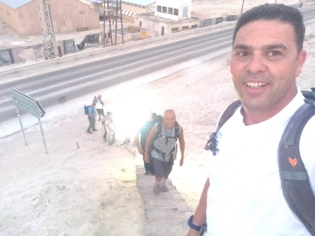 טיפסנו לגובה 160 מטר לעבר פיסגת רכס הר סדום, הטיפוס היה בינוני -קשה שהקפיץ את הדופק, הגענו לפיסגה מנוחה קלה.