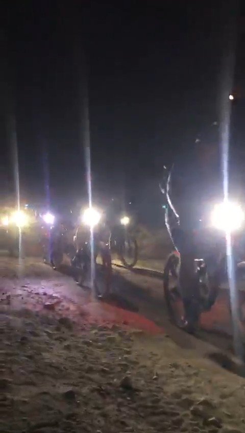 מנוחה קלה בנחל פרצים לשתייה וצפייה לעליית ירח, הבחנו באלומת אור המגיעה מצידו הצפוני של נחל פרצים אשר הגיעה לכיווננו ומדובר היה בקבוצה גדולה מאוד של רוכבי אופני שטח.