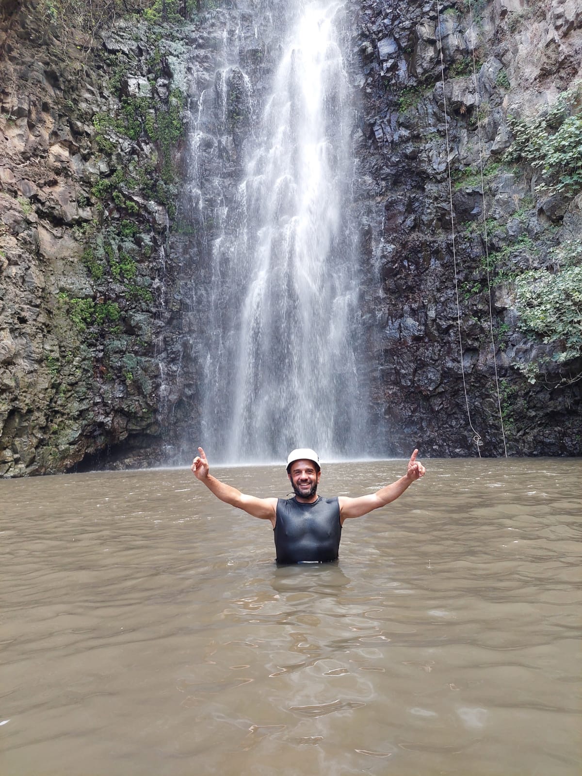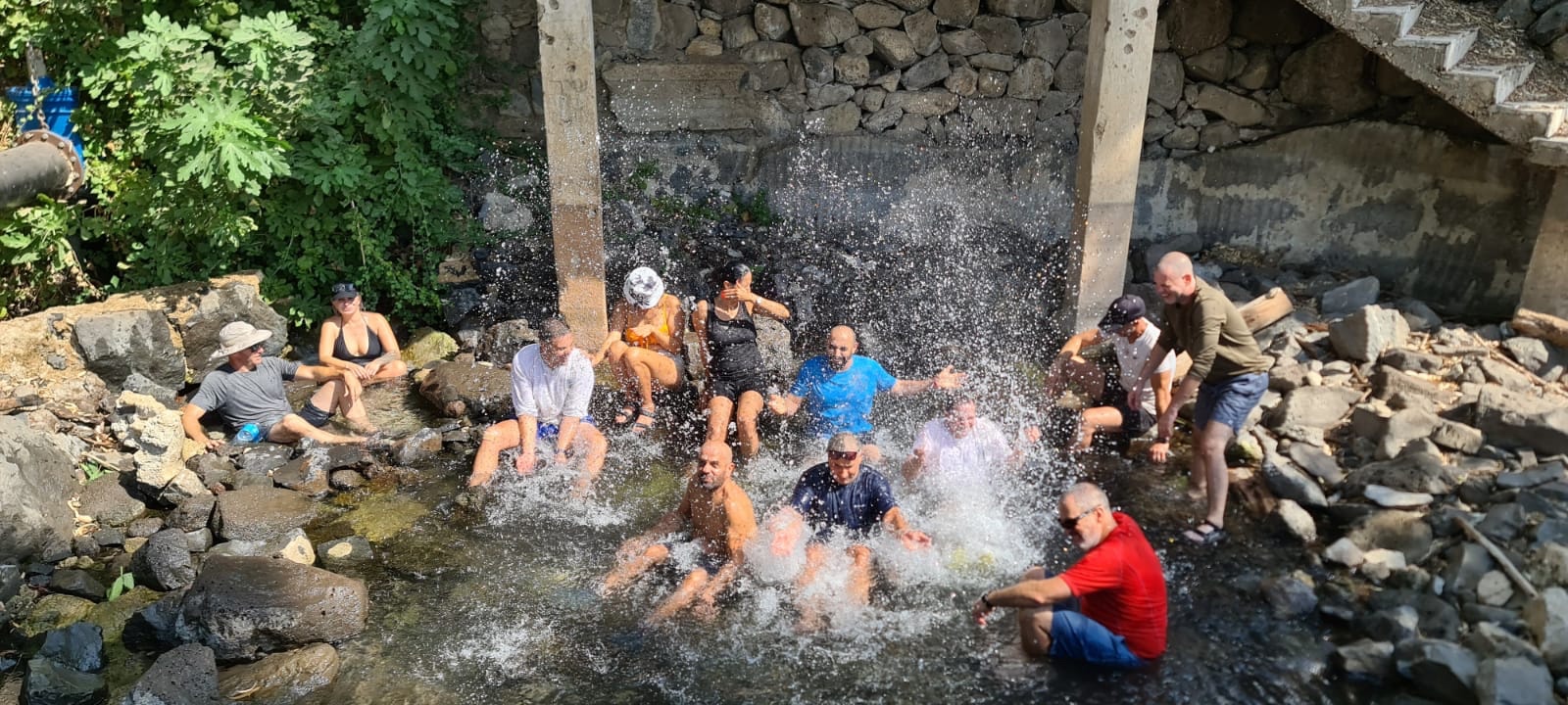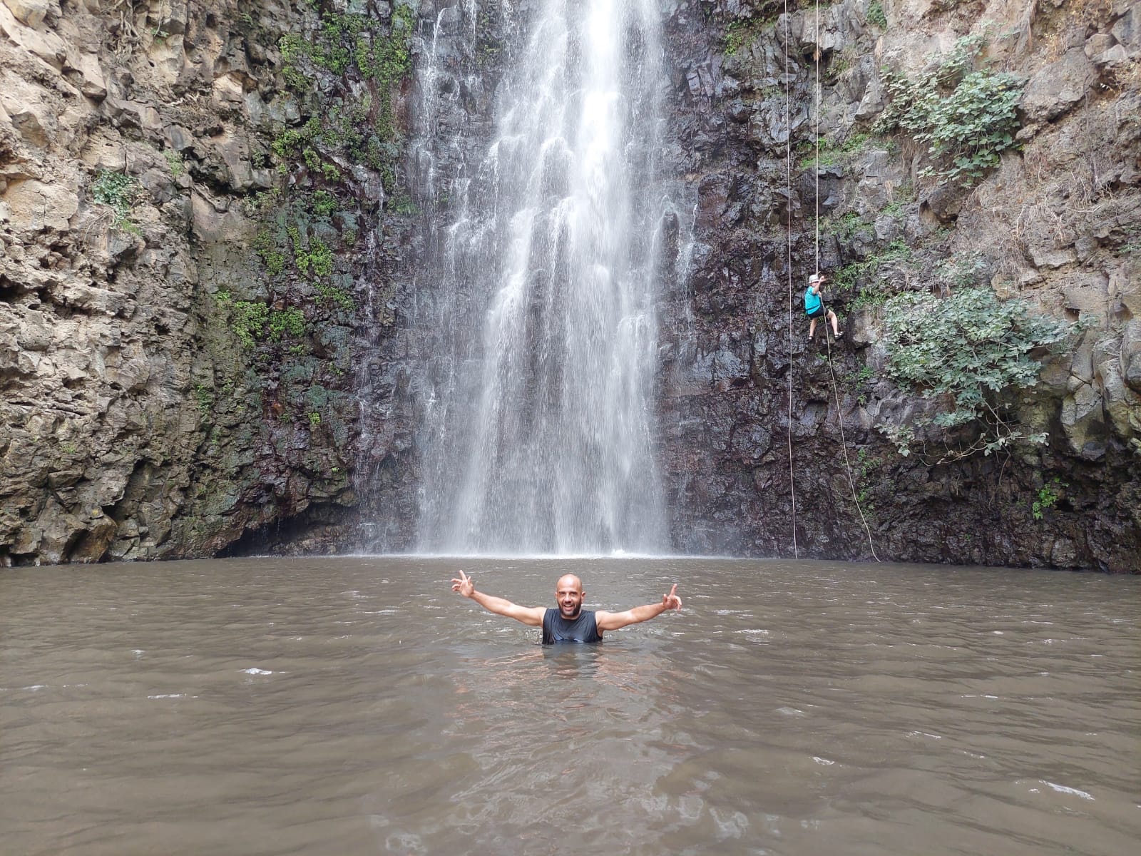לאחר שכולם גלשו, דאגנו להוריד הציוד והתיקים והצטרפנו לקבוצה בבריכת המפל , התארגנו על ארוחה קלילה, סנדוויצ’ים , חטיפים , חטיפי בריאות וסיימנו עם קפה טוב ופלחי אבטיח. בסיום דאגנו לצילום משותף על רקע המפל העוצמתי.