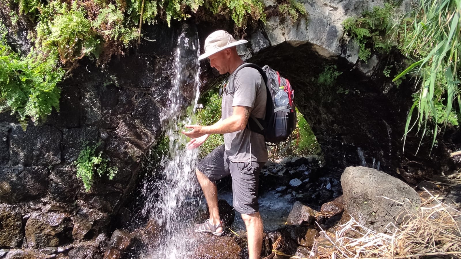 מבריכת הקצינים המשכנו במסלול מעניין וצר המוקף בסבך צמחייה ברוחב של כמטר בלבד , השביל הוביל אותנו עד טחנת הקמח עין ג’ילבון , במקום אמת מים הנשפכת מהמבנה ויוצרת מעין מפלון קטן המאפשר לעשות מקלחת טבע.