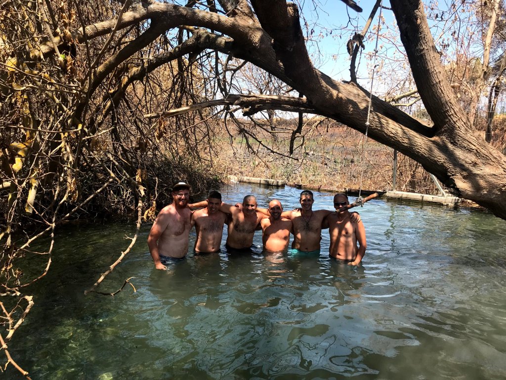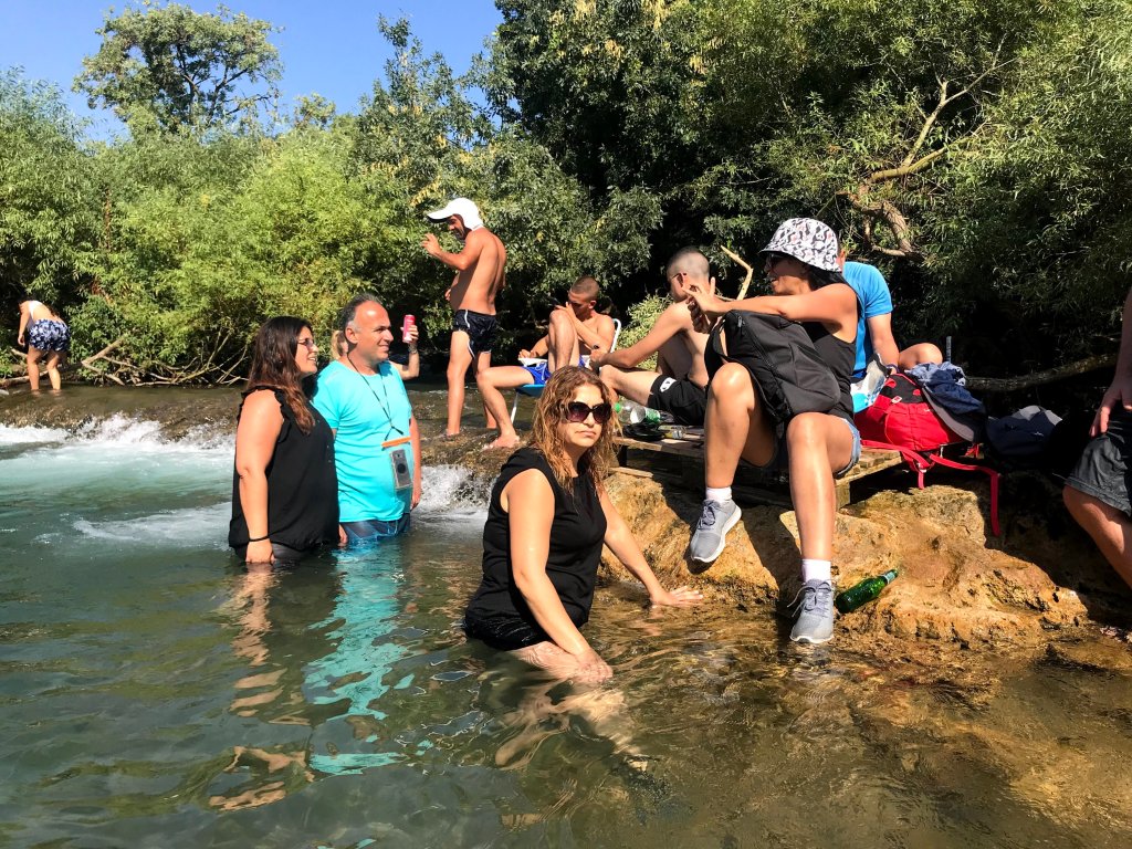 בסיום הארוחה התארגנו על הרכבים ונסענו לעין איוב הסמוך לכפר נחום, החננו הרכבים בצידי העפר וירדנו אל החוף וטבלנו במים הנעימים ובמפלים הנשפכים למקום.