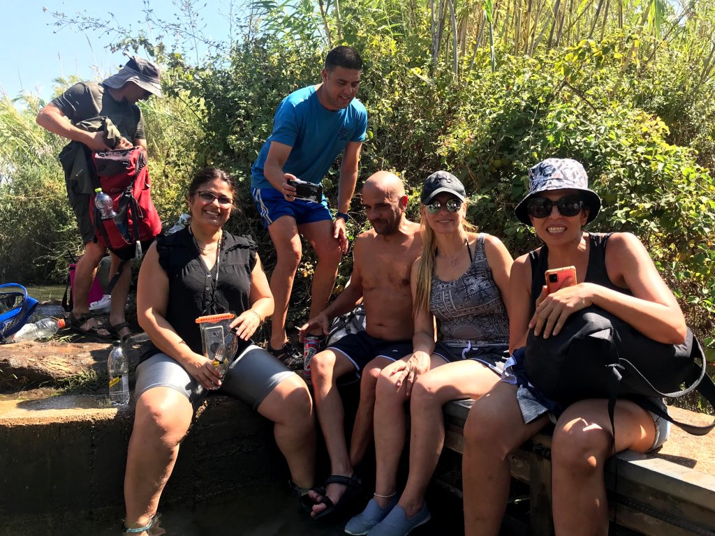 ממעיין עין תאו נסענו עד לפארק שניר בהמתנה לחברי הקבוצה שהחלו את מסלול הקיאקים בבוקר , פגשנו את קובי מור חיים , בני יניב , בת שבע מיזן ועוד… התארגנו לארוחת צהריים בחניון הסמוך לנחל דן .