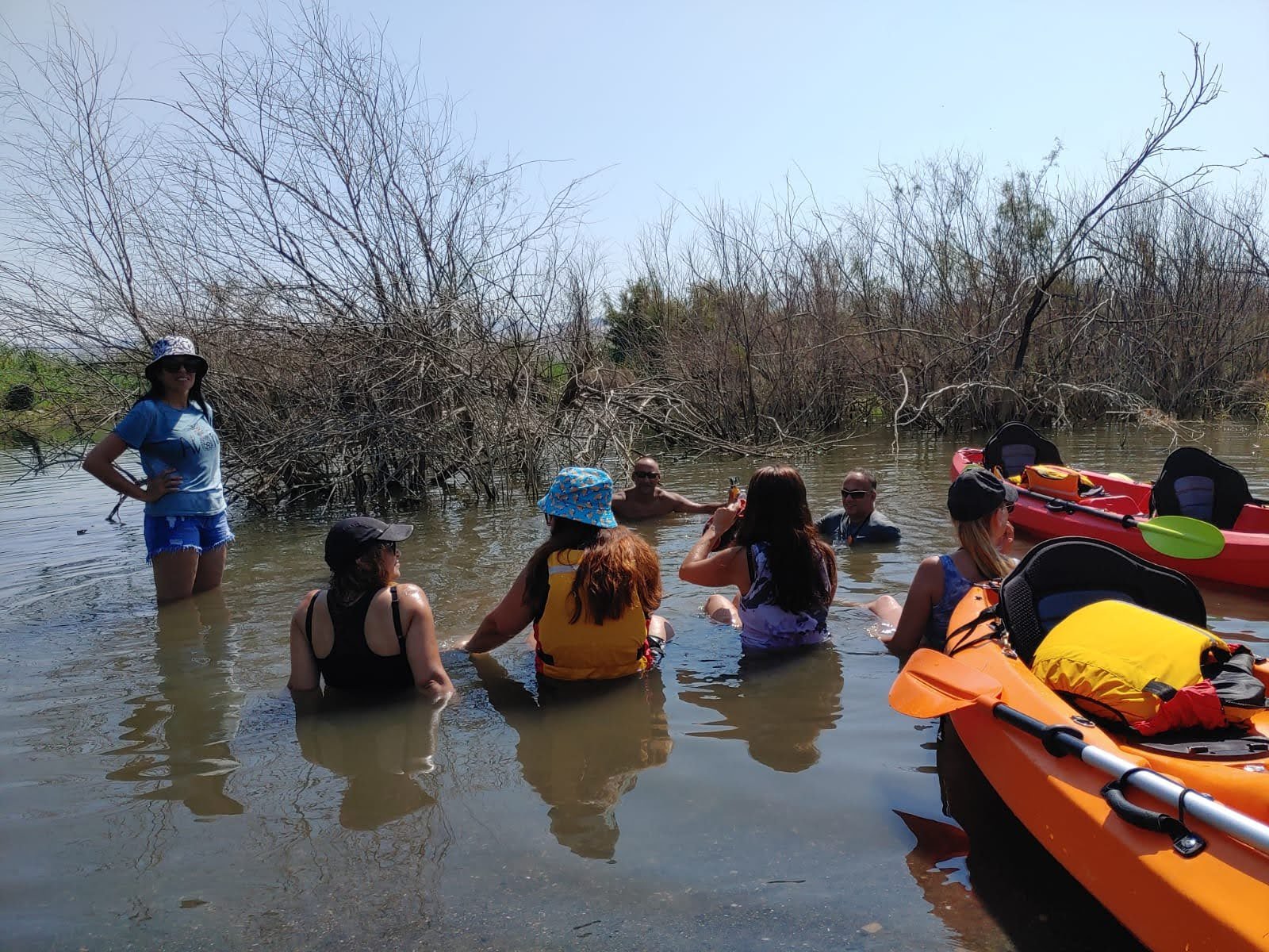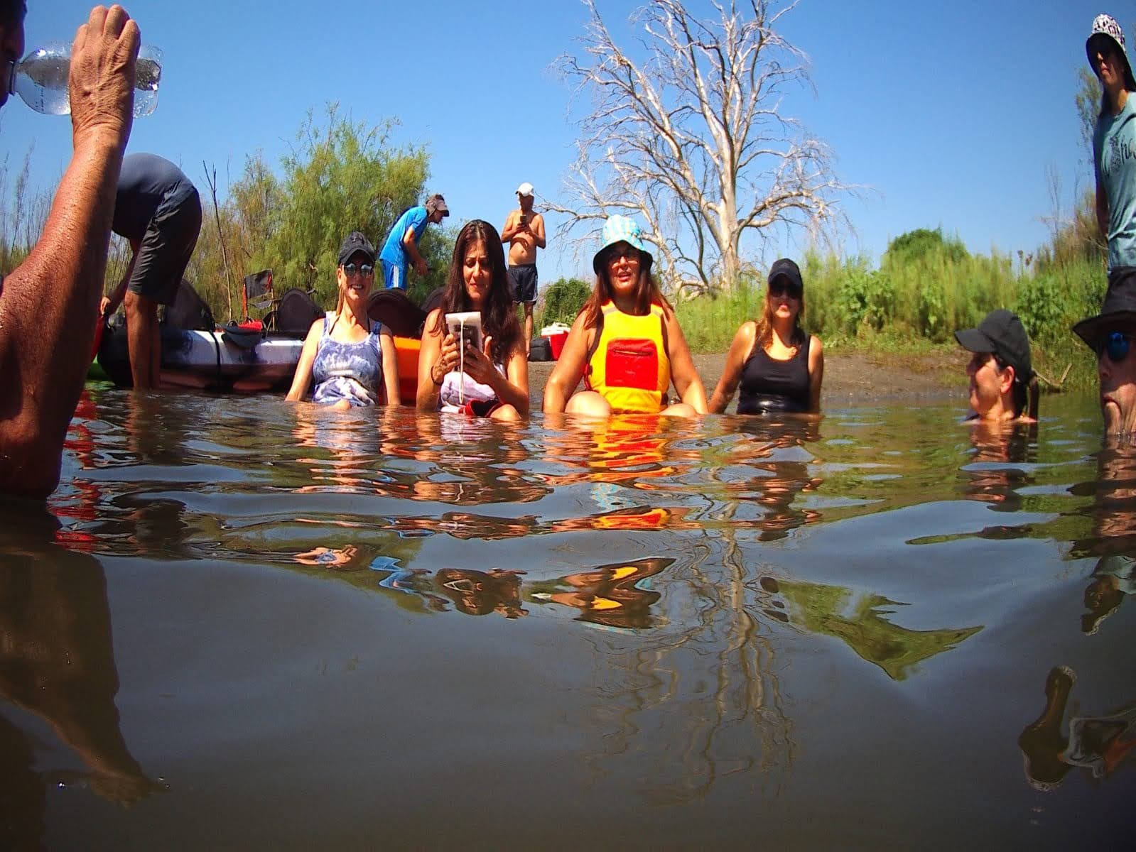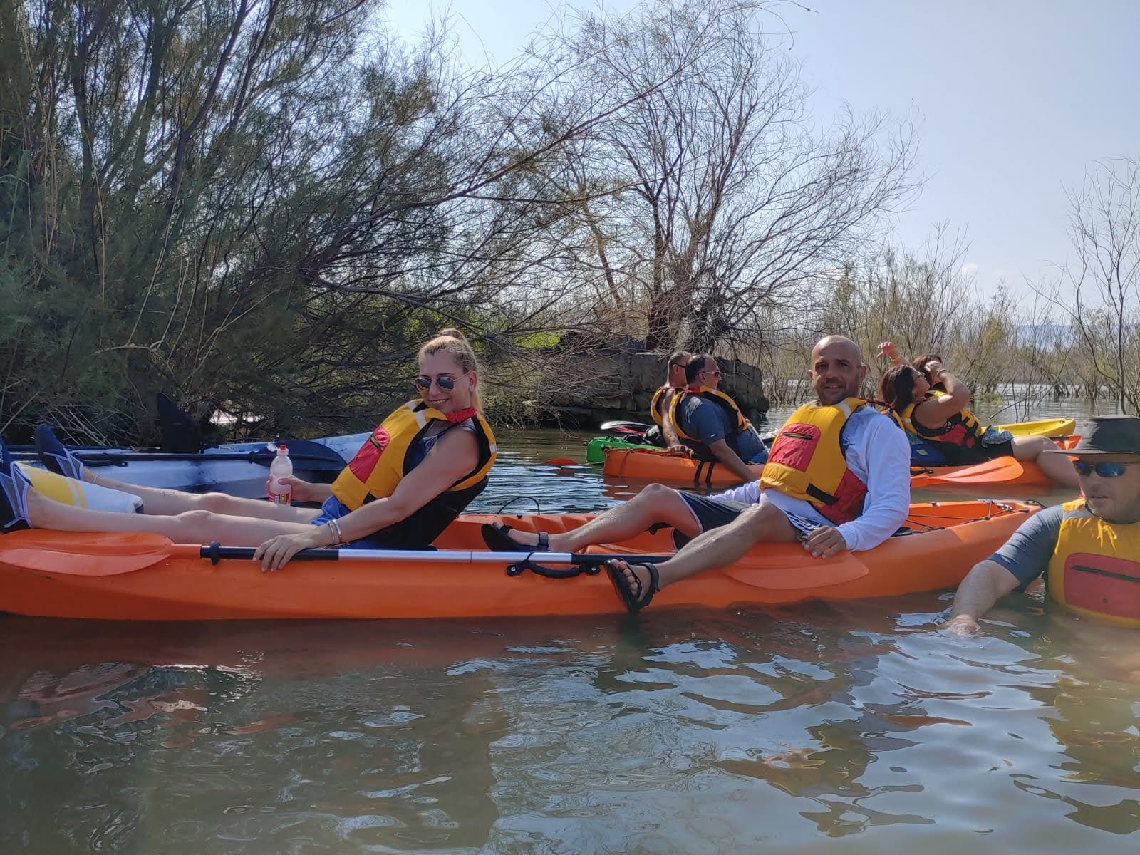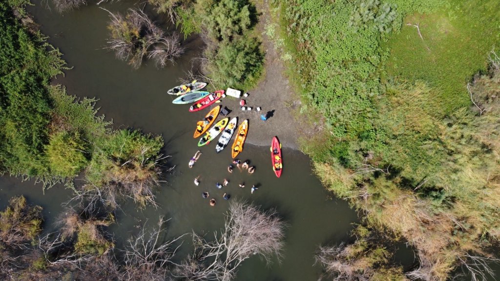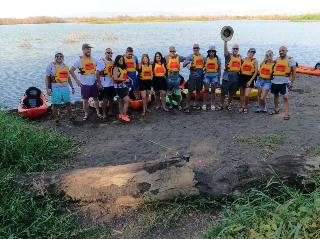 מזג האויר היה נעים ונוח , התארגנו כולנו לתמונה קבוצתית לפני השייט , עלינו לקיאקים והתחלנו לשוט.