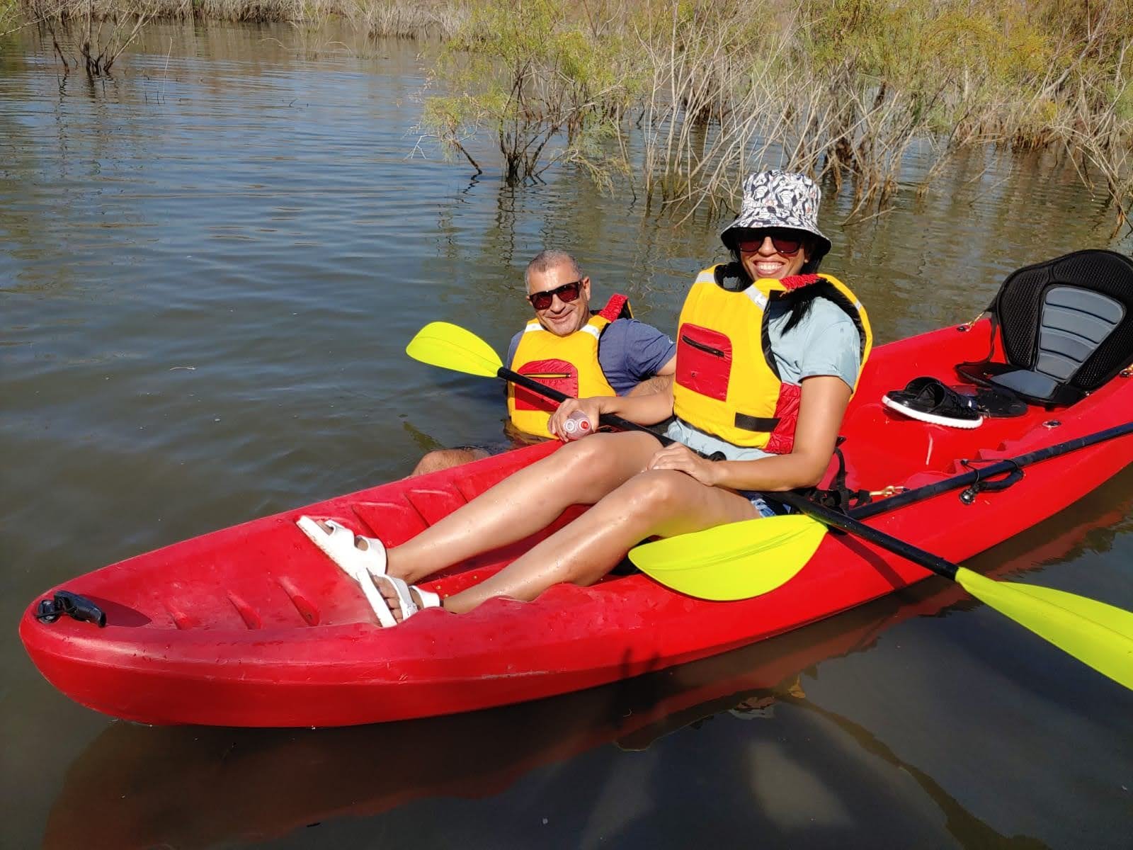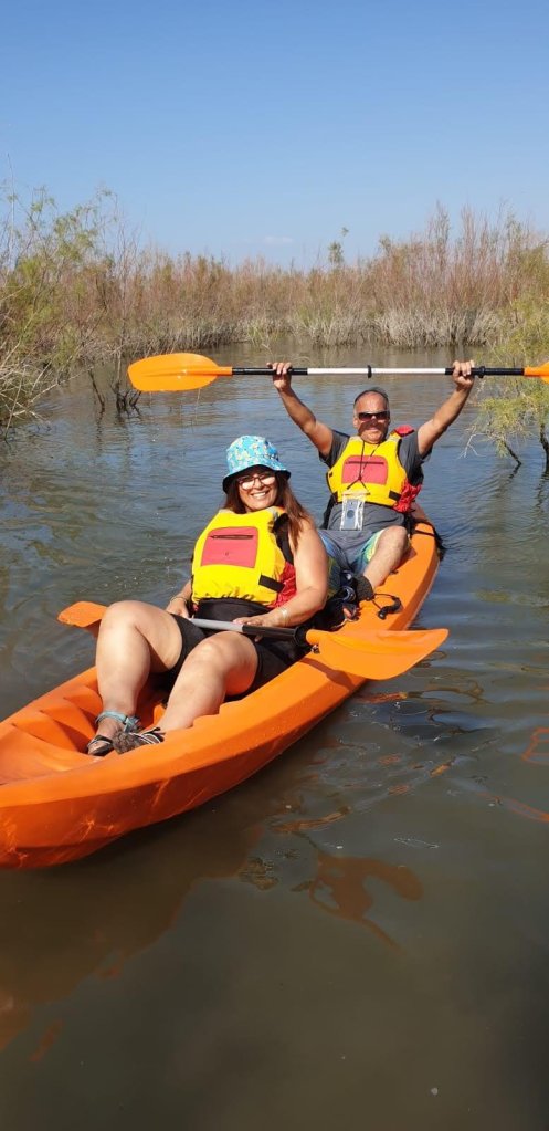 נהננו לפגוש במקום את אילן ושולי מימון .. לאחר הסבר קצר של ברוך עלינו זוגות זוגות על הקייאקים והתחלנו לחתור בהכוונתו של שי.