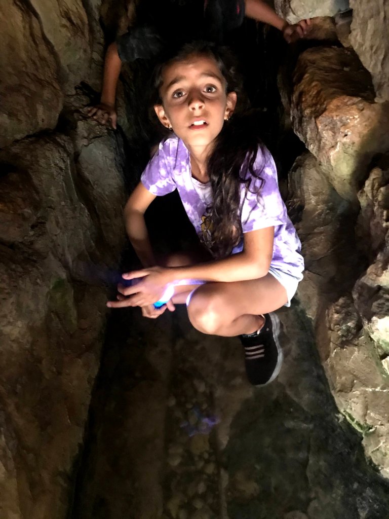 נכנסנו עם הילדים לניקבה העליונה וזחלנו עם פנס ויצאנו מהפתח התחתון.