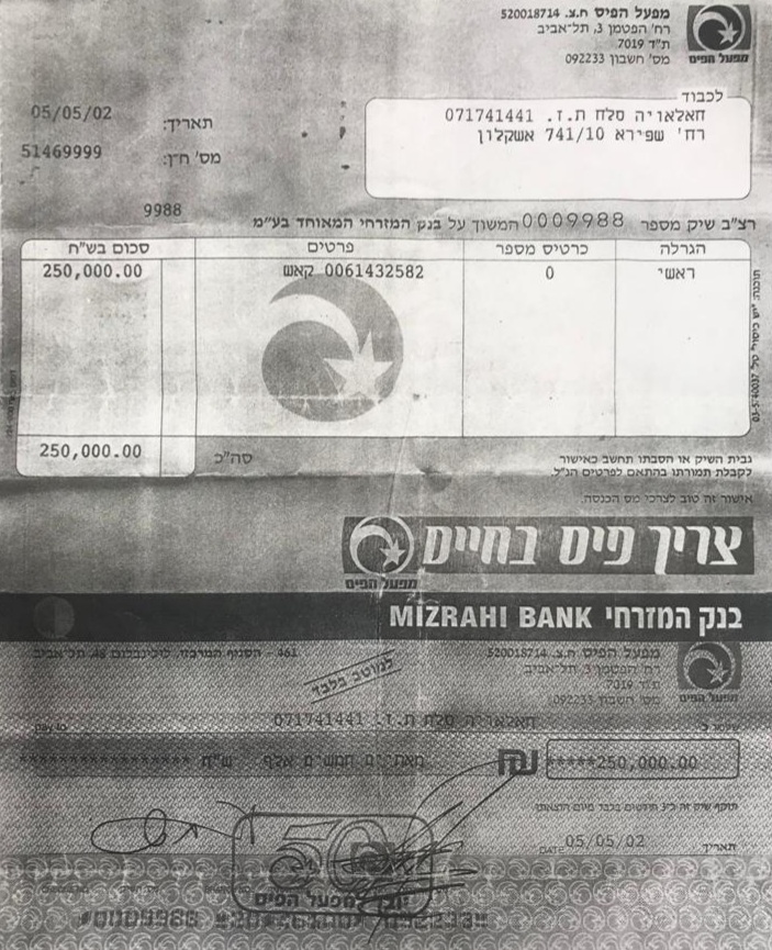בחודש מאי שנת 2002 אבא זכה בחישגד בסך 250,000 ₪ , ניגשנו לבית מפעל הפיס בתל אביב, ולאחר קבלת הצ'ק הגענו לבנק ואת כספי הזכייה חילק בין ילדיו שווה בשווה. לרגל המאורע חגגנו על האש בבית של חזי. אבא היה בן 65 שנה.