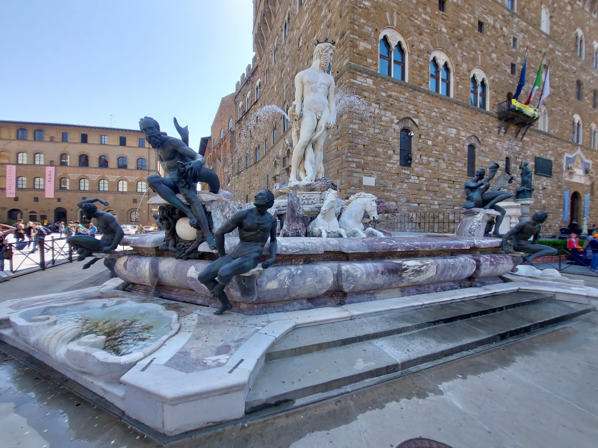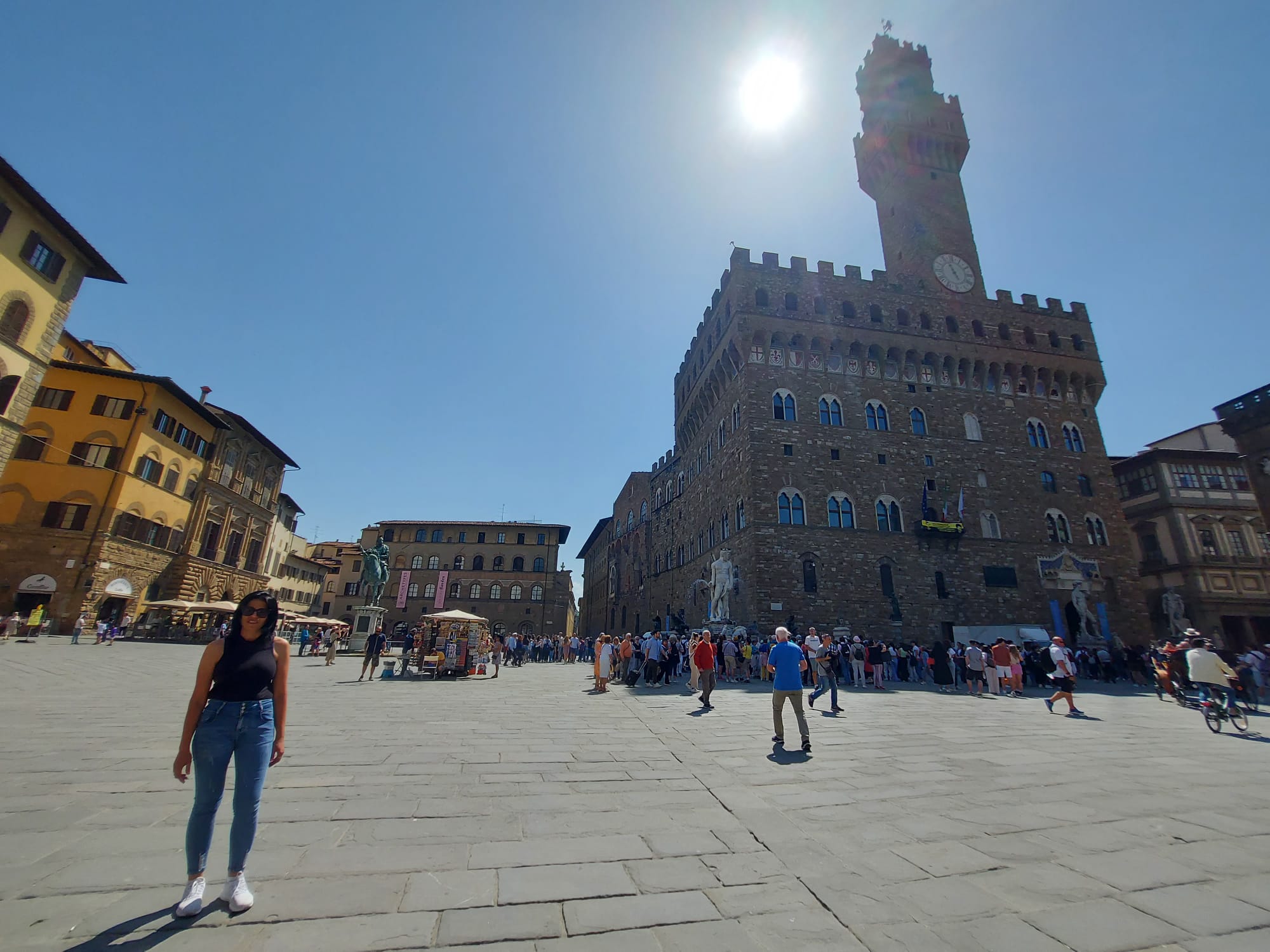 בכיכר הסיניורה ישבנו לקפוצינו באחת המסעדות בכיכר, משיחה עם המלצר המקום נקרא סניורה בפי אמידי ועשירי המקום וזאת להצגת עושרן ומעמדם.. במקום קיים העתק מדויק של פסל דוד….