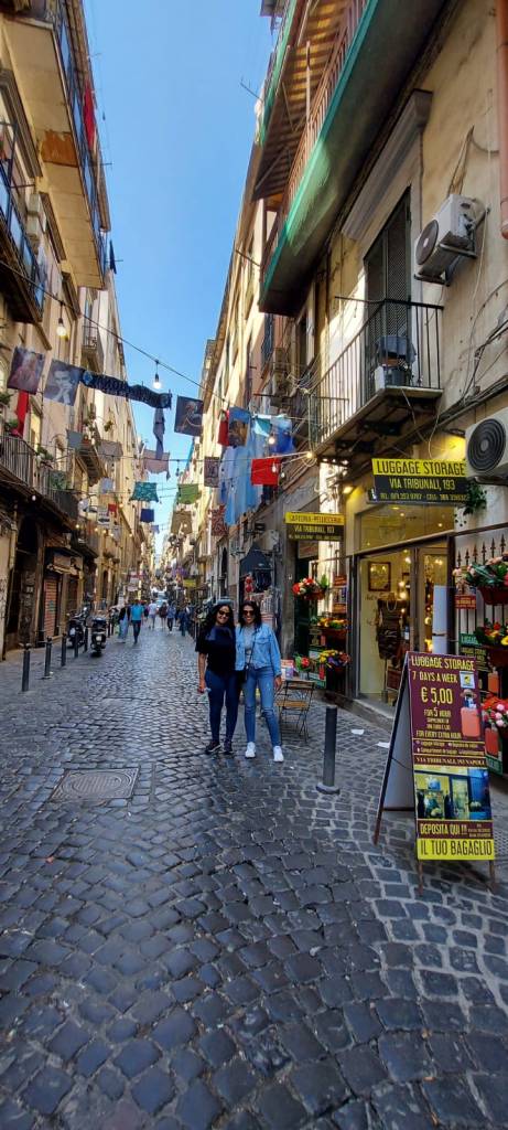חצינו את הצומת הסואנת והמשכנו בדרכנו דרך הסימטאות עד הגענו לרחוב via del tribunali , מדובר ברחוב מעניין בשל הבגדים הצבעוניים התלויים לאורך הרחוב.