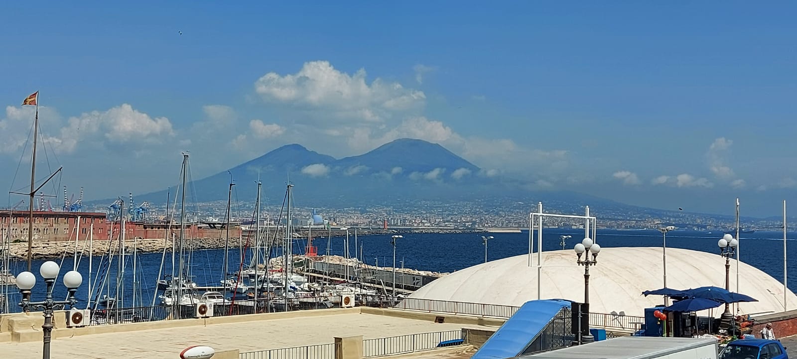 מרחבת סאן פרנצסקו, המשכנו לכיוון המרינה, מהמקום נשקפים הרי ואזוב העוצמתיים, מדובר בהר געש פעיל ואטרקציה תיירותית, מפאת קוצר הזמן התפקדו בתמונות.