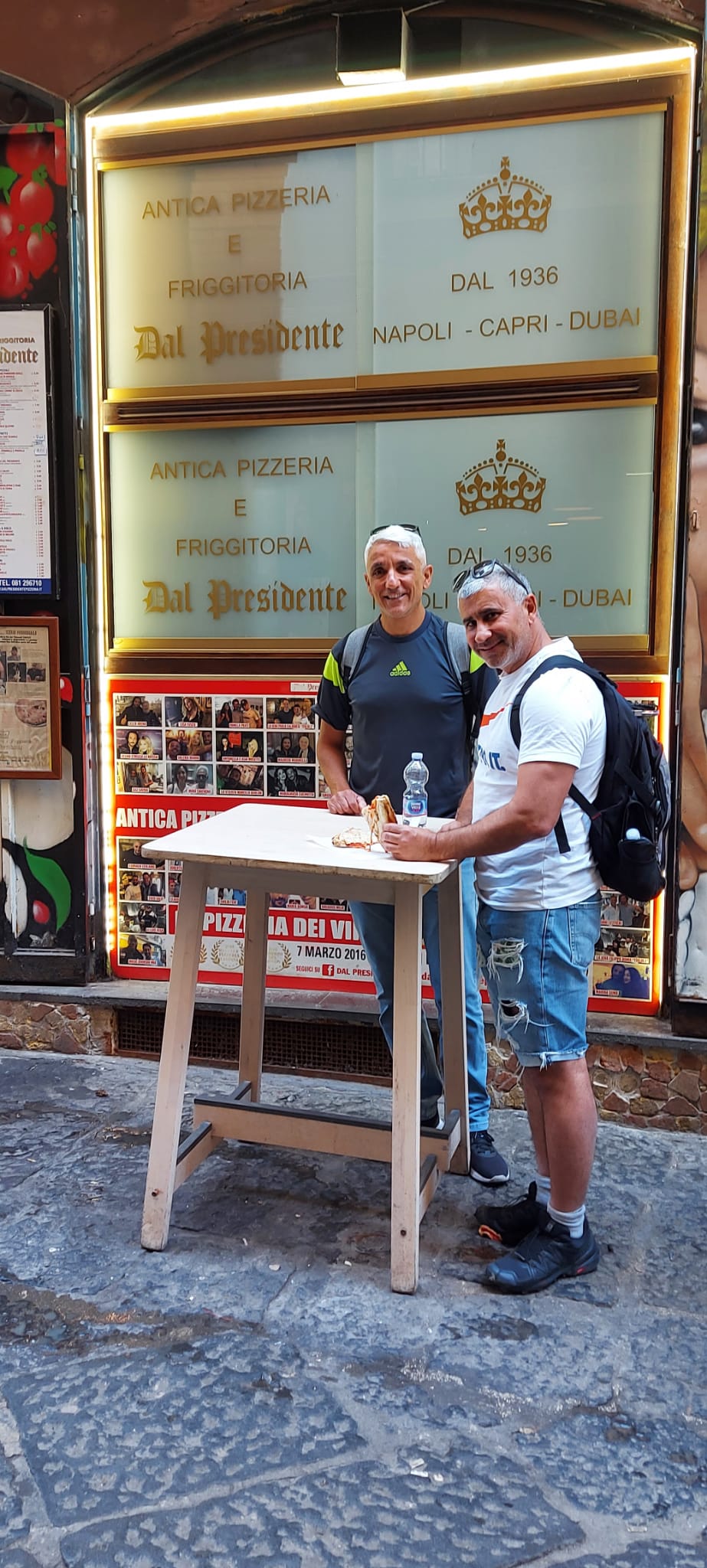המשכנו ליעד נוסף במשך הרחוב של פיצה ראשונה שהוקמה בנאפולי בשנת 1870 בשם anticA pizzeria portal Alba, מדובר בפיצה מיוחדת שעשויה מלאפה ורוטב מיוחד עם מעט גבינה צהובה. המשכנו בהליכה בסימטאות לכיוון קפלת סאן סברו