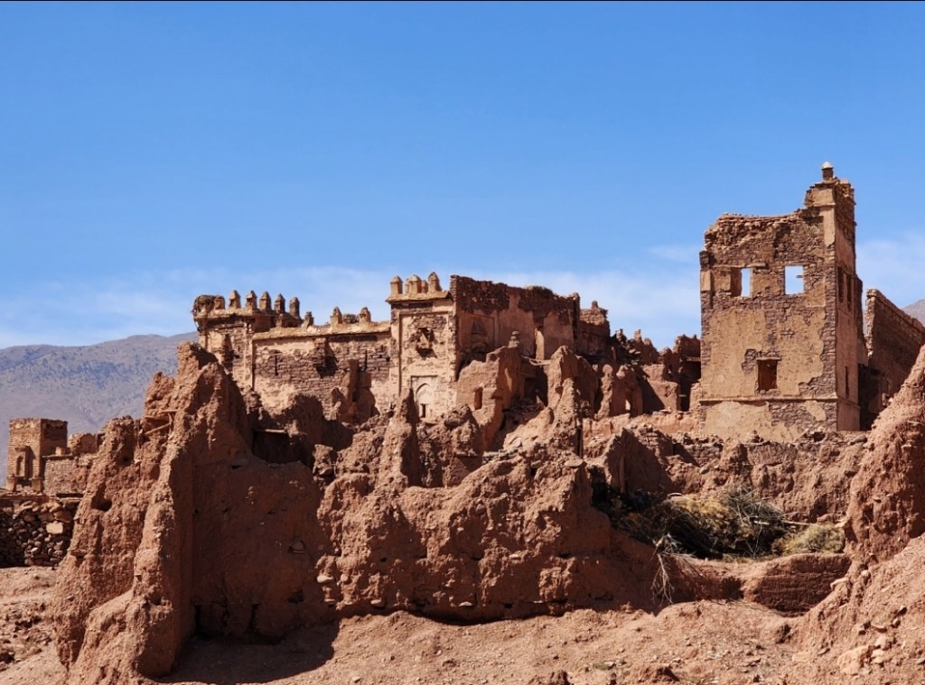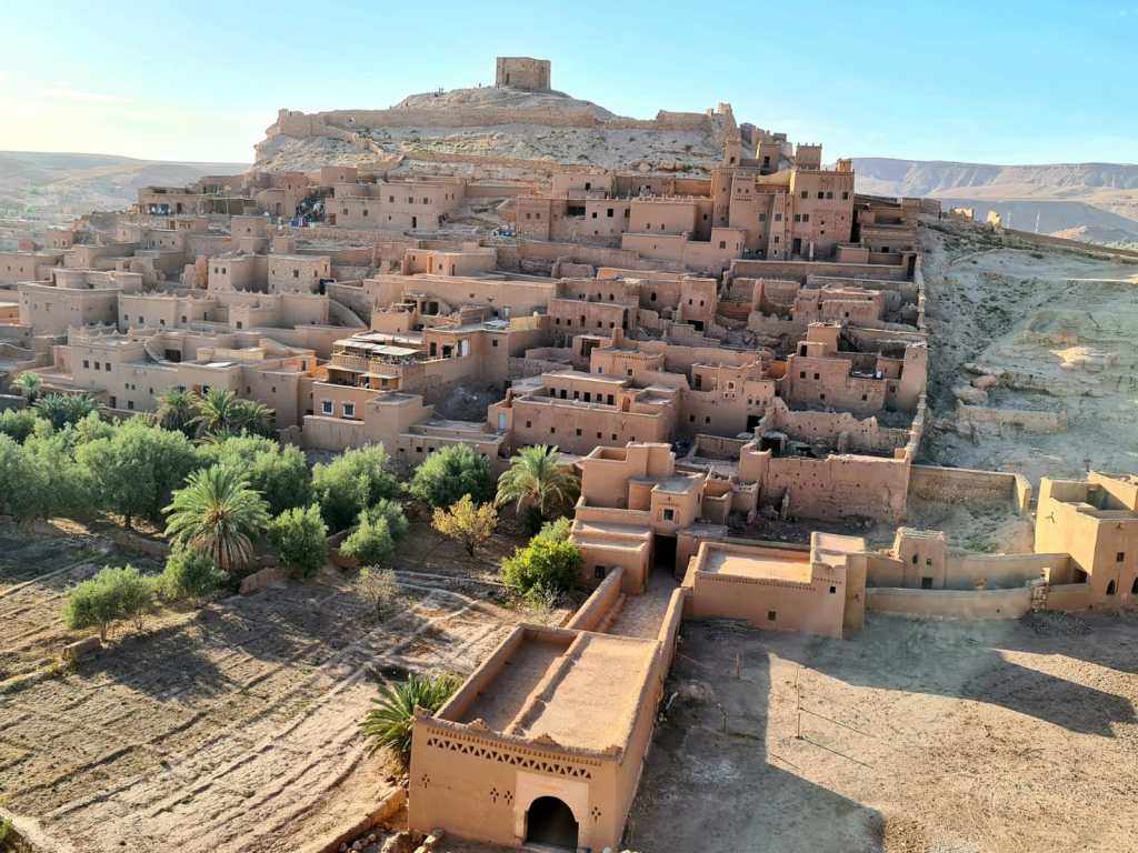 בסיום הביקור בטיולאט , המשכנו בדרכנו לעבר קסבת עיר הסרטים בעיירה איט בינחדו ait benhaddou, הדרך למקום הייתה רצופה נופים מרהיבים ובתי חימר לכל אורך ערוץ הנחל וההרים.