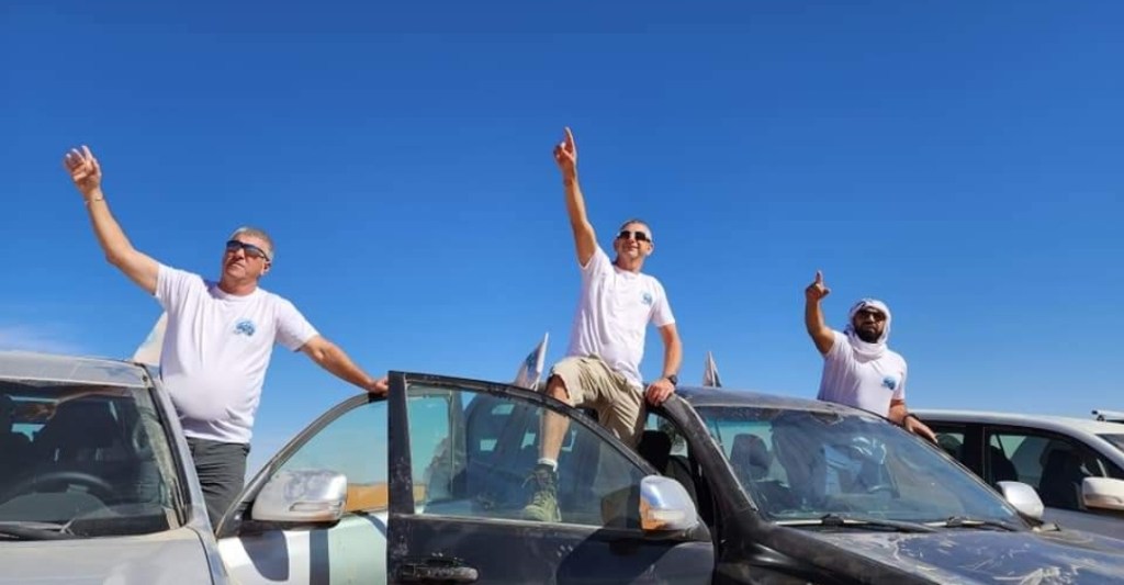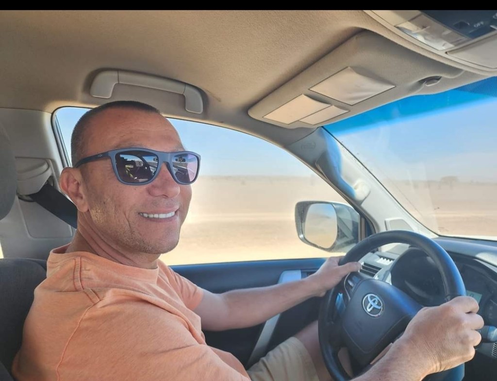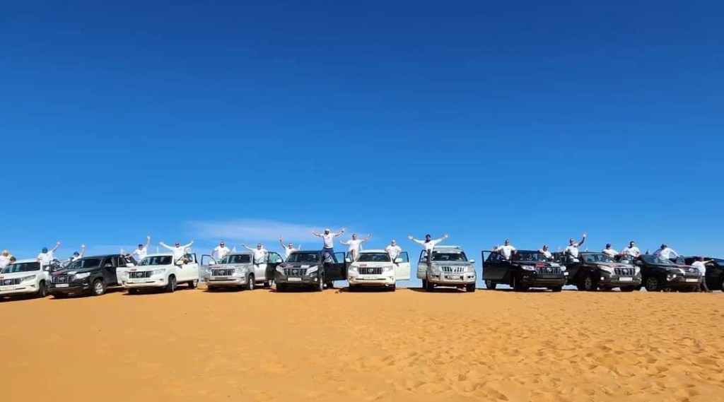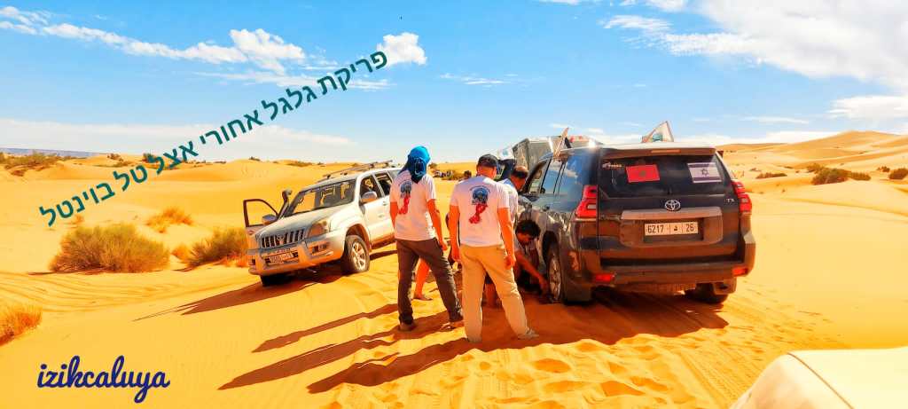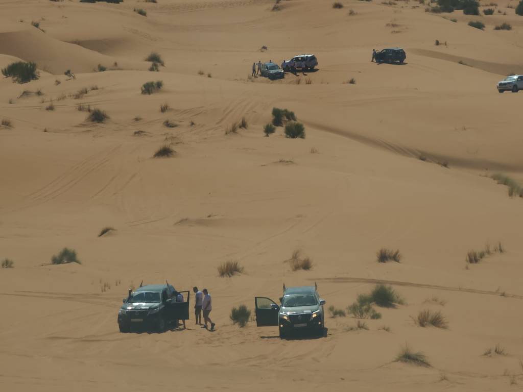 בסיום סיור הגמלים חזרנו לאורחן…ארוחת בוקר , עלינו לג'יפים ונסענו לתדלק ..בסיום תדלוק הרכבים… נסענו בשטח לנקודת תחילת ציר הדיונות….