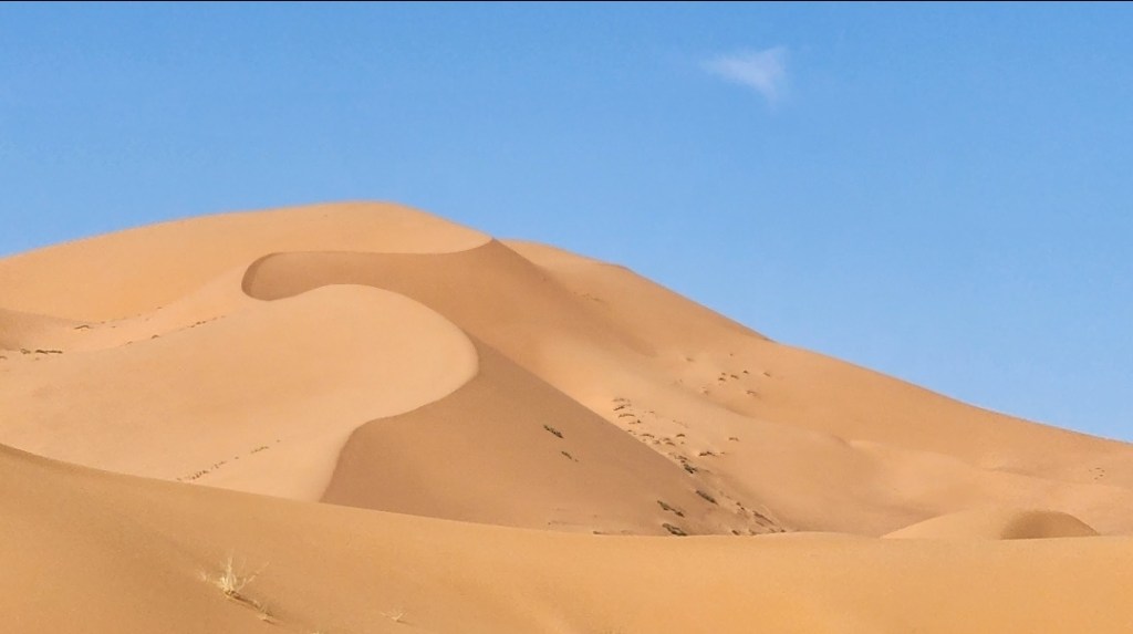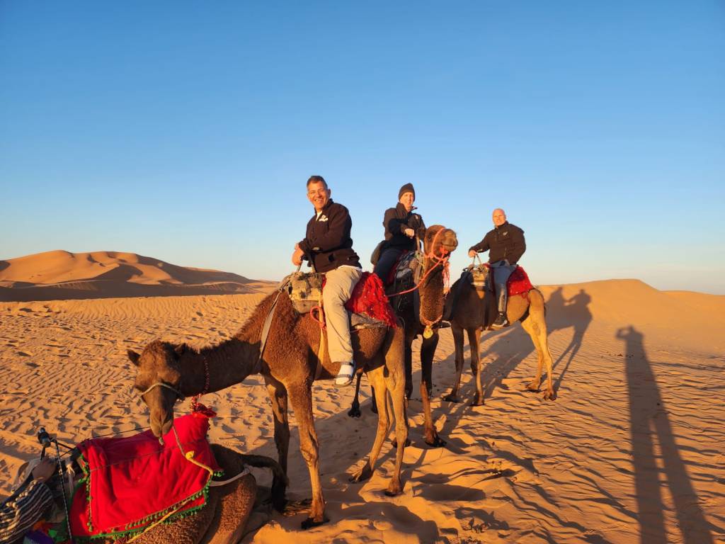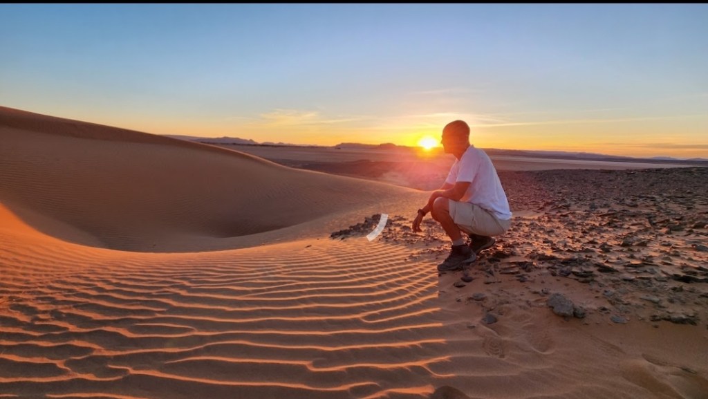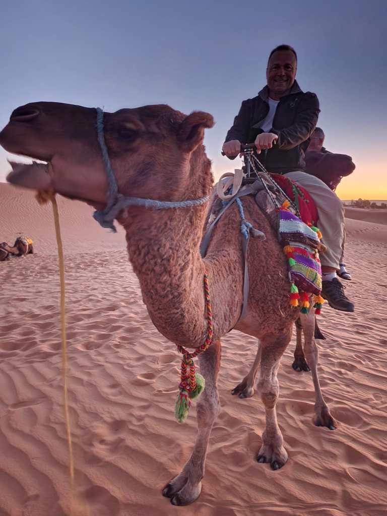 התעוררנו מוקדם לצפייה בזריחה מאזור הדיונות….דרכנו לדיונות הייתה על גבי גמלים שהמתינו לנו מחוץ לאורחן…. רכיבה קצרה…קצת תמונות…צפייה בזריחה וחזרה לאורחן לארוחת בוקר וקיפול ליעד הבא…