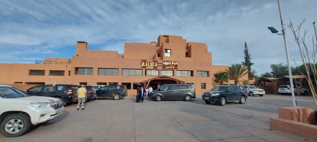 בסיום הטיפוס נסענו בדרכנו למלון Xaluca הנמצא בעייריה Boumalne Dades , קבלת הפנים בכניסה למלון לוותה בשירה ותופים ע"י צוות המלון….מדובר במלון הכי מפנק וייחודי עד כה בטיול… ונהנינו מארוחת ערב עשירה ומגוונת….